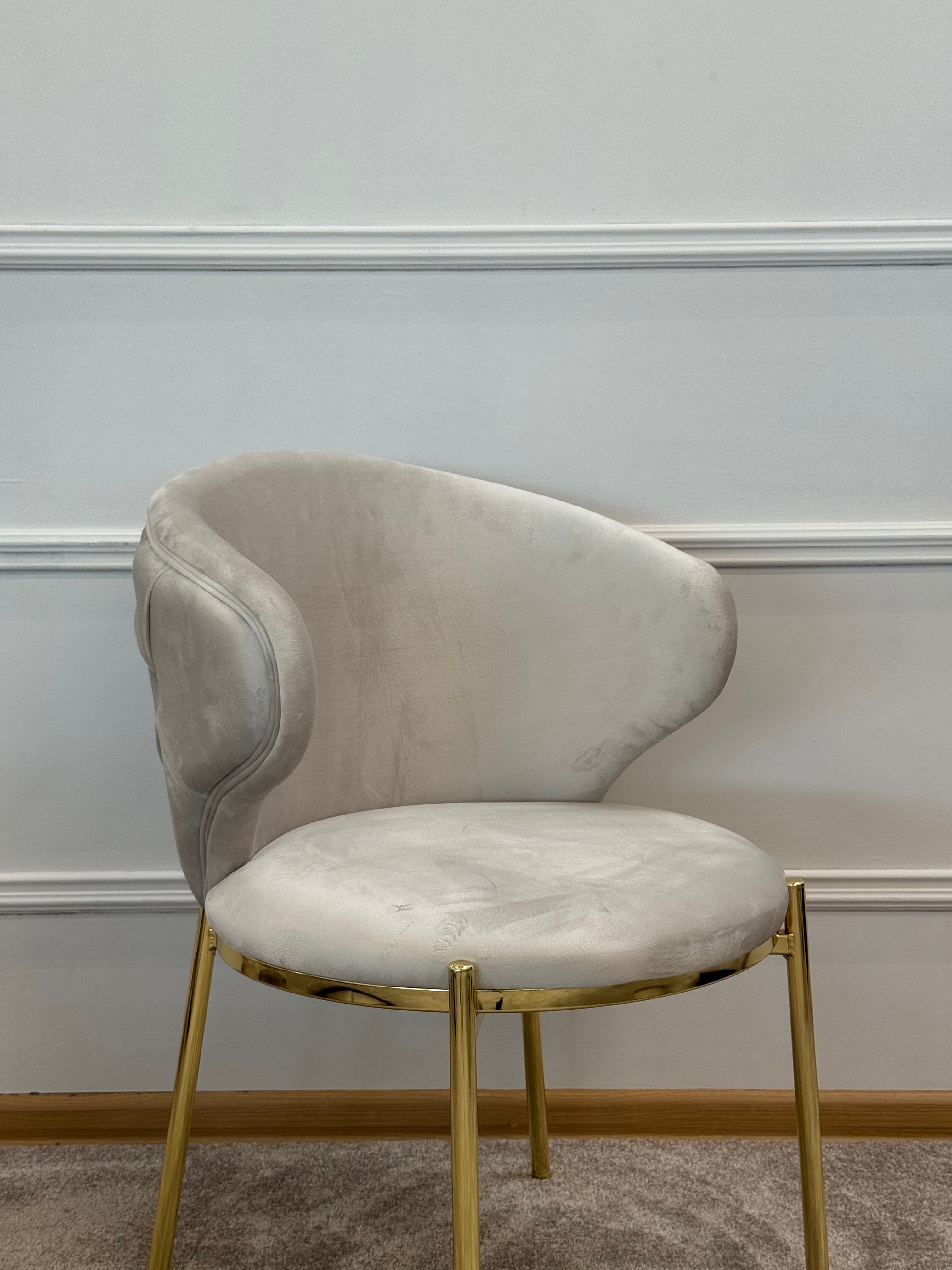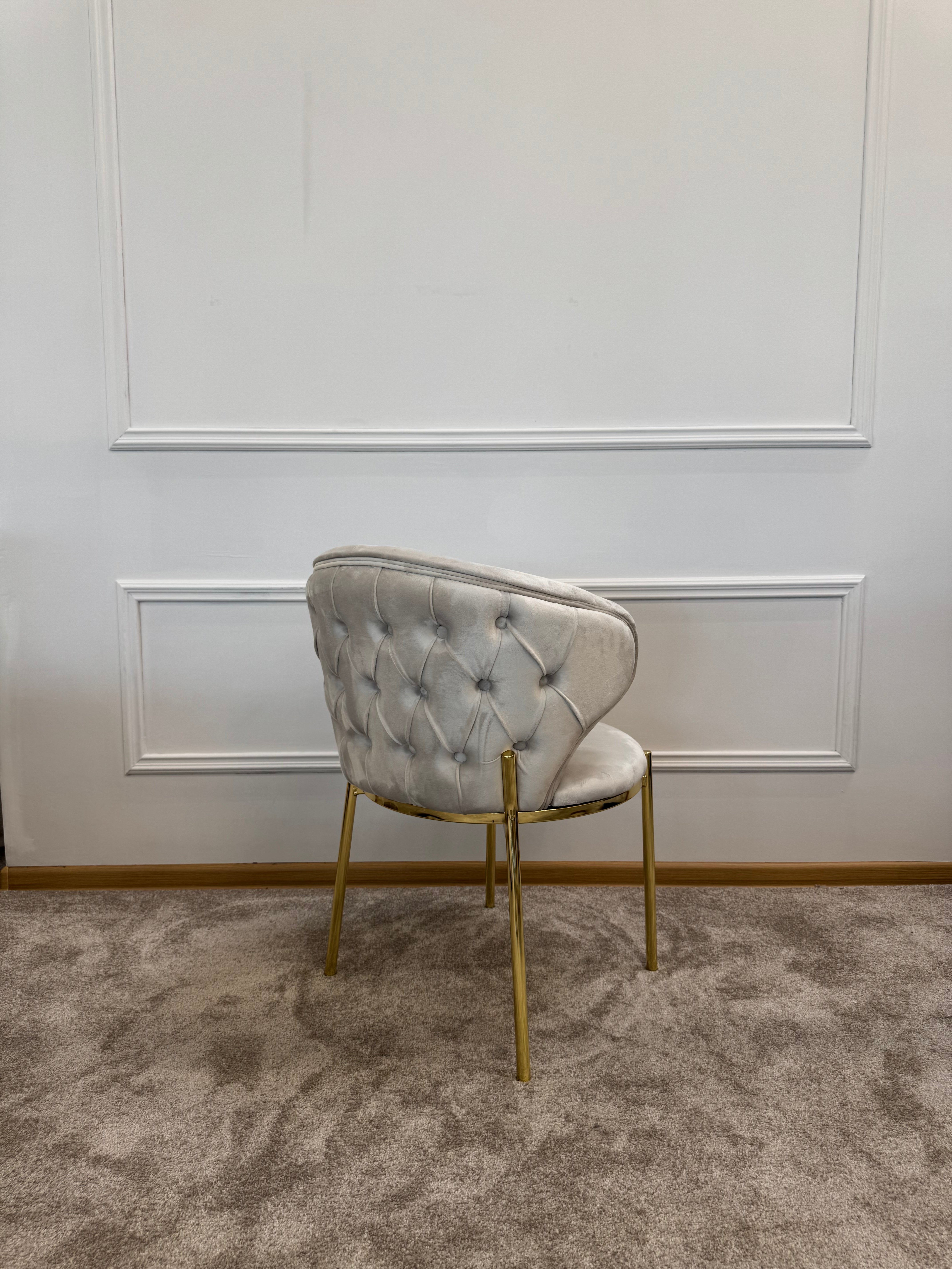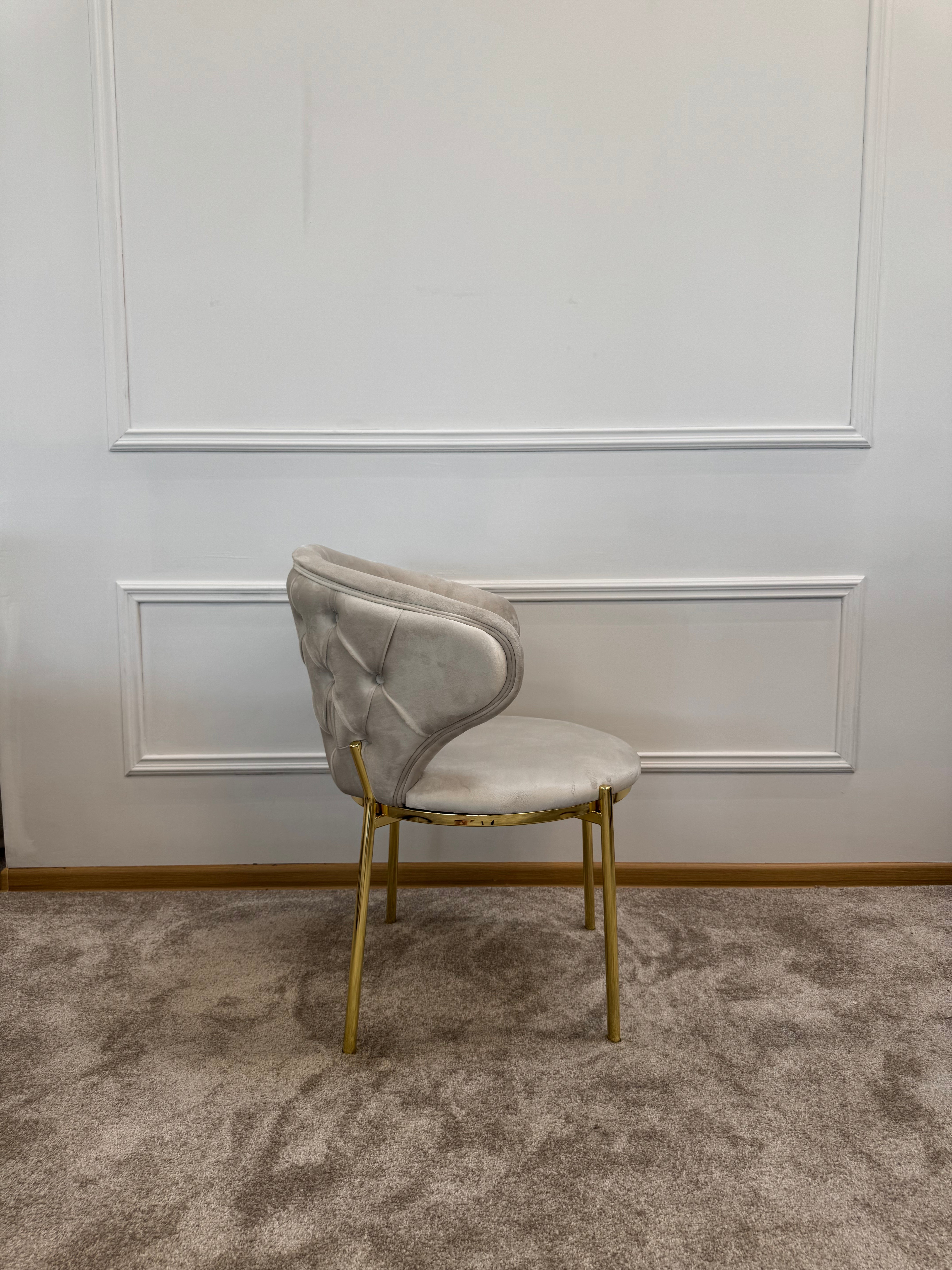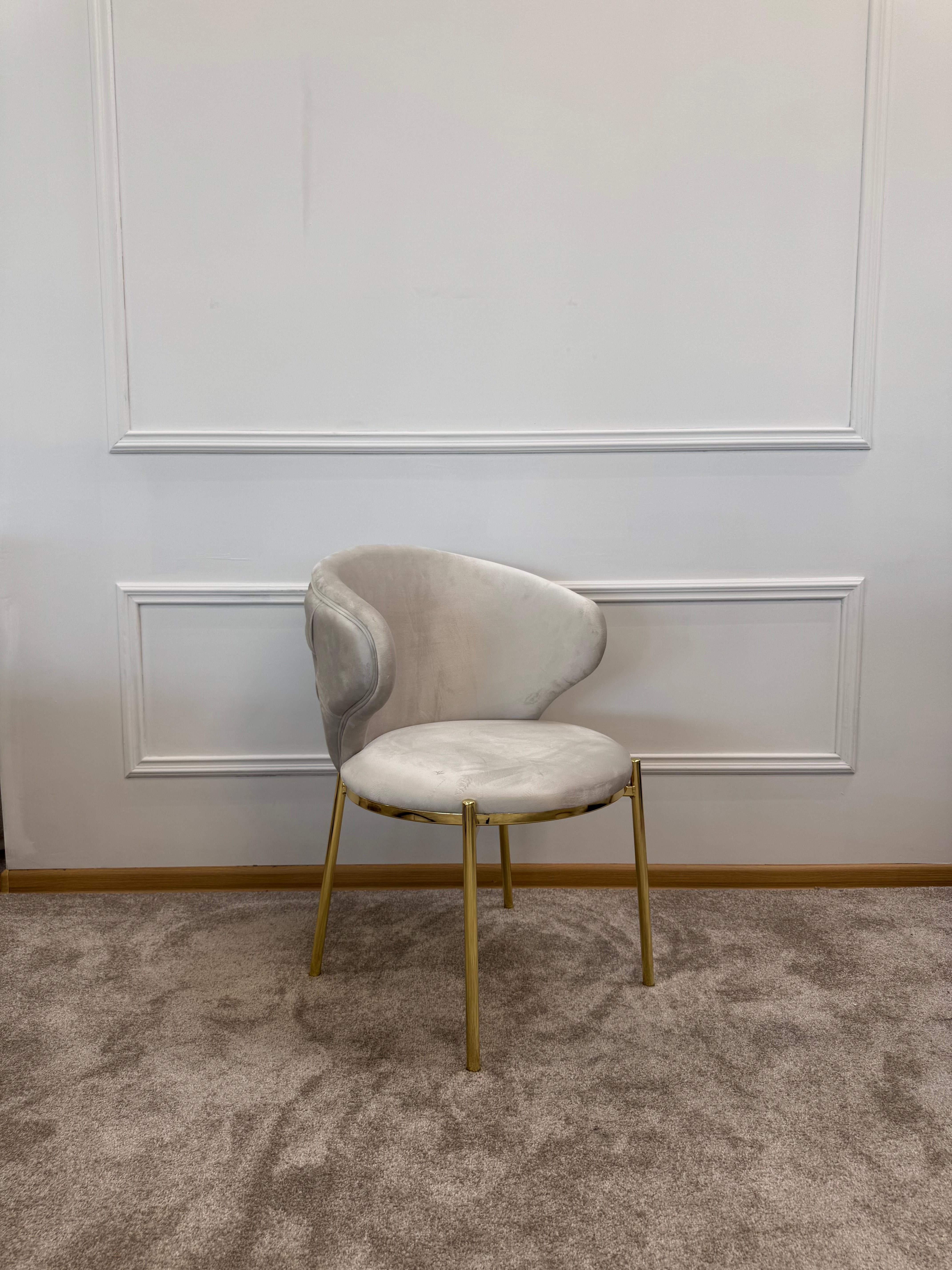 Завдяки оббивці з приємного на дотик велюру та ергономічній формі, сидіти на ньому комфортно навіть протягом довгого часу. А металеві ніжки із золотим блиском додають вишуканості й міцності конструкції.