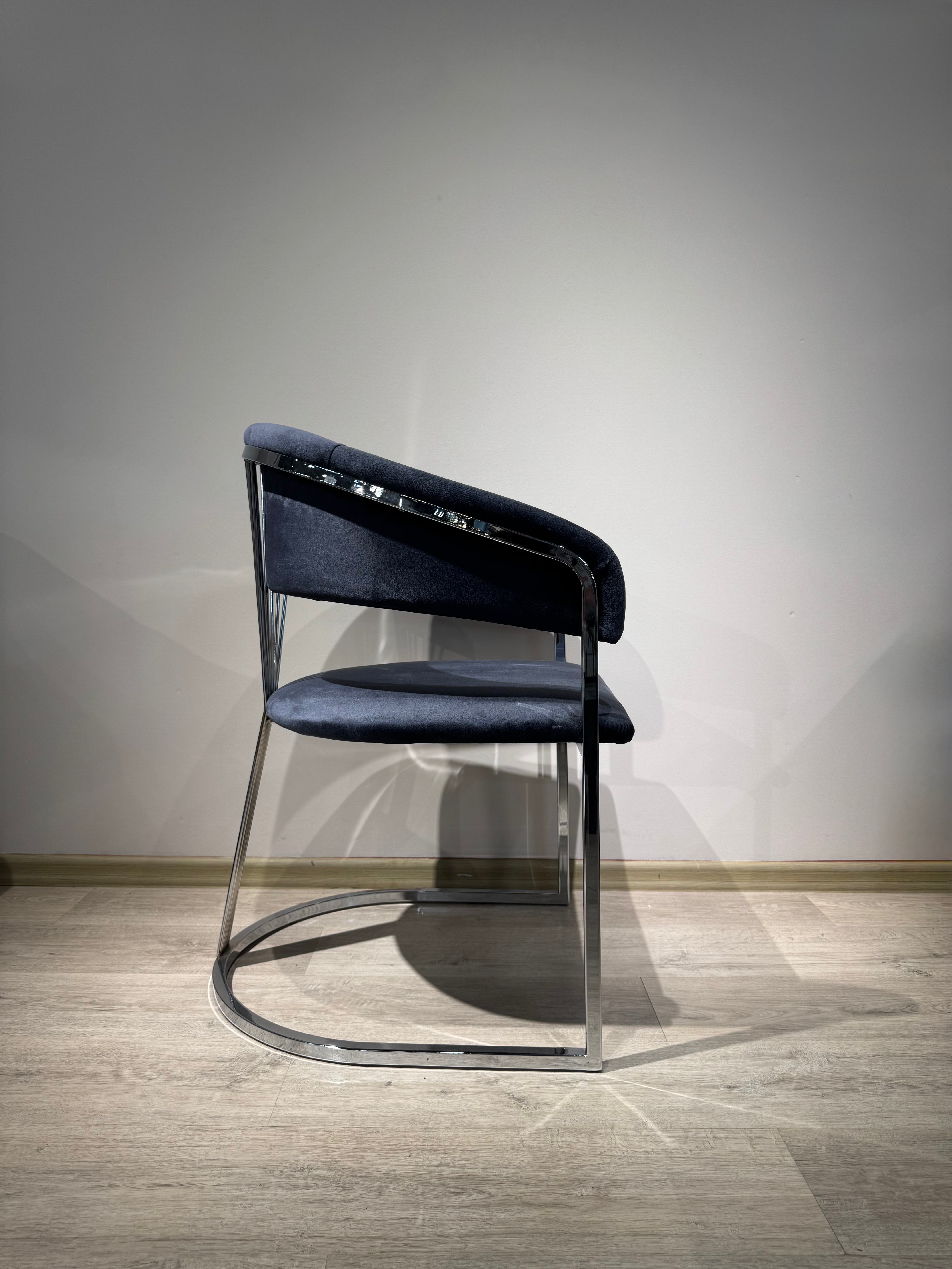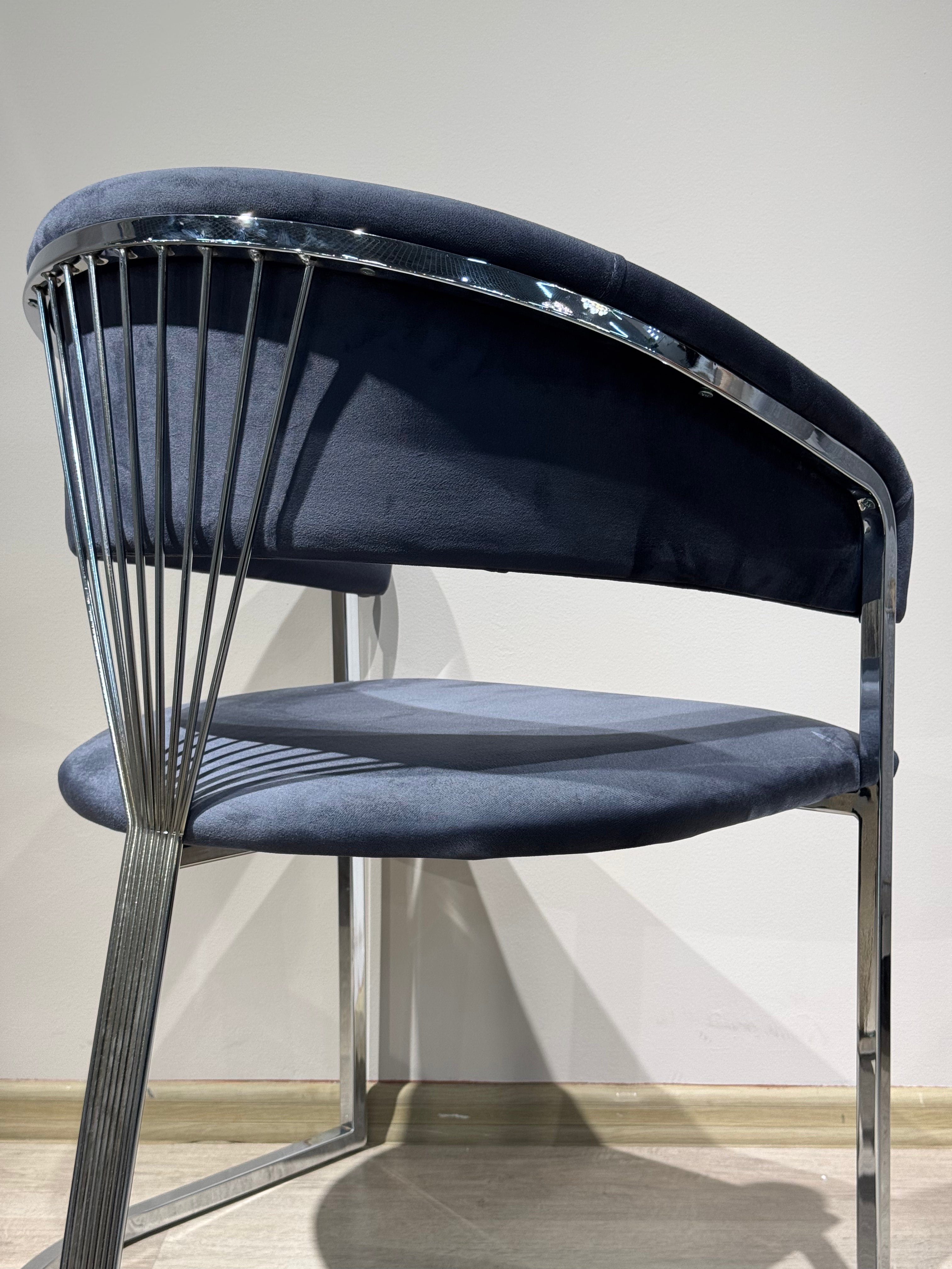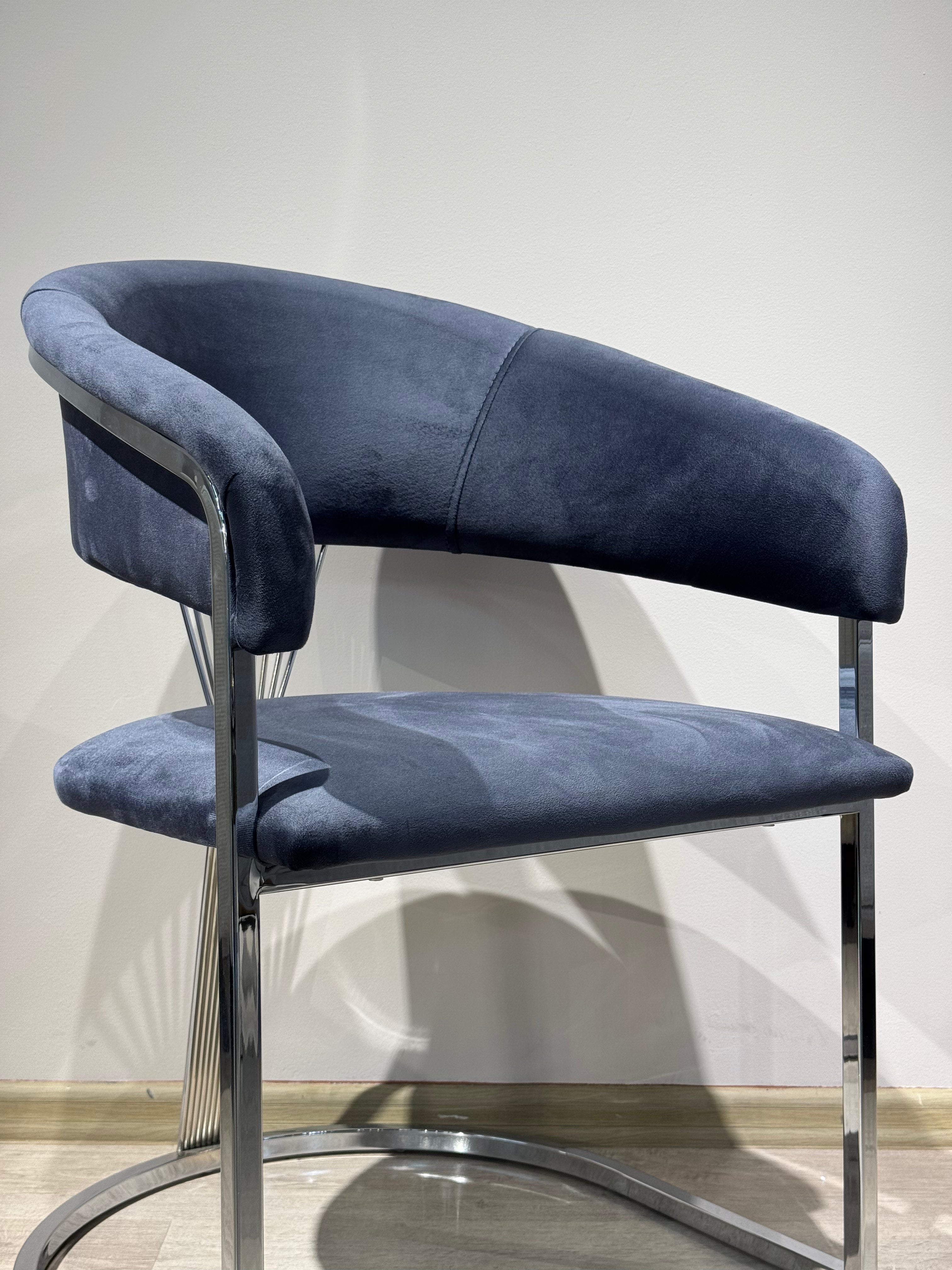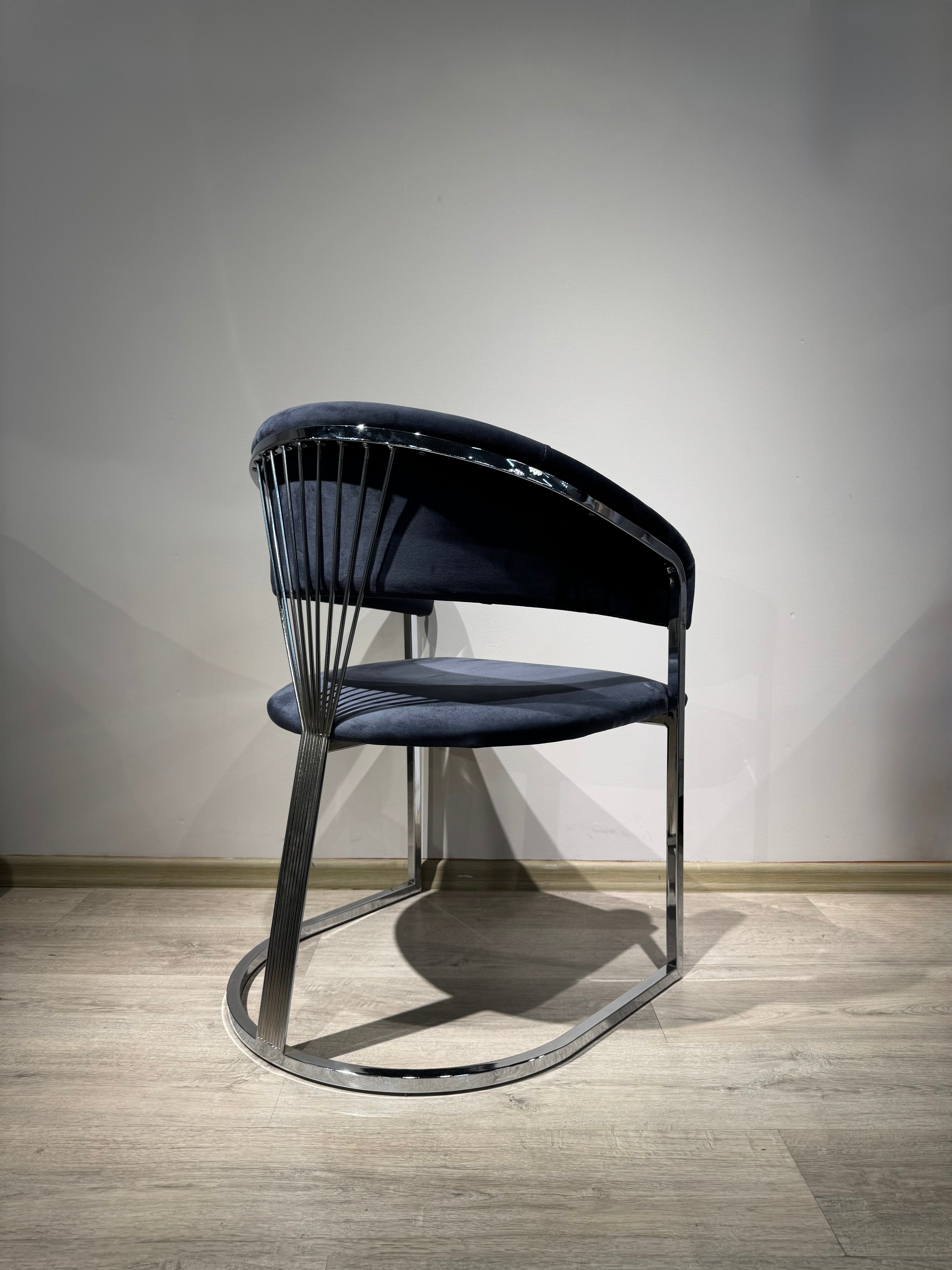 Стілець Viola — це втілення сучасного мінімалізму з нотками елегантної вишуканості. Його плавні форми, комфортна округла спинка та м’яка оббивка створюють затишну посадку, а хромована металева база додає легкості та надійності конструкції.