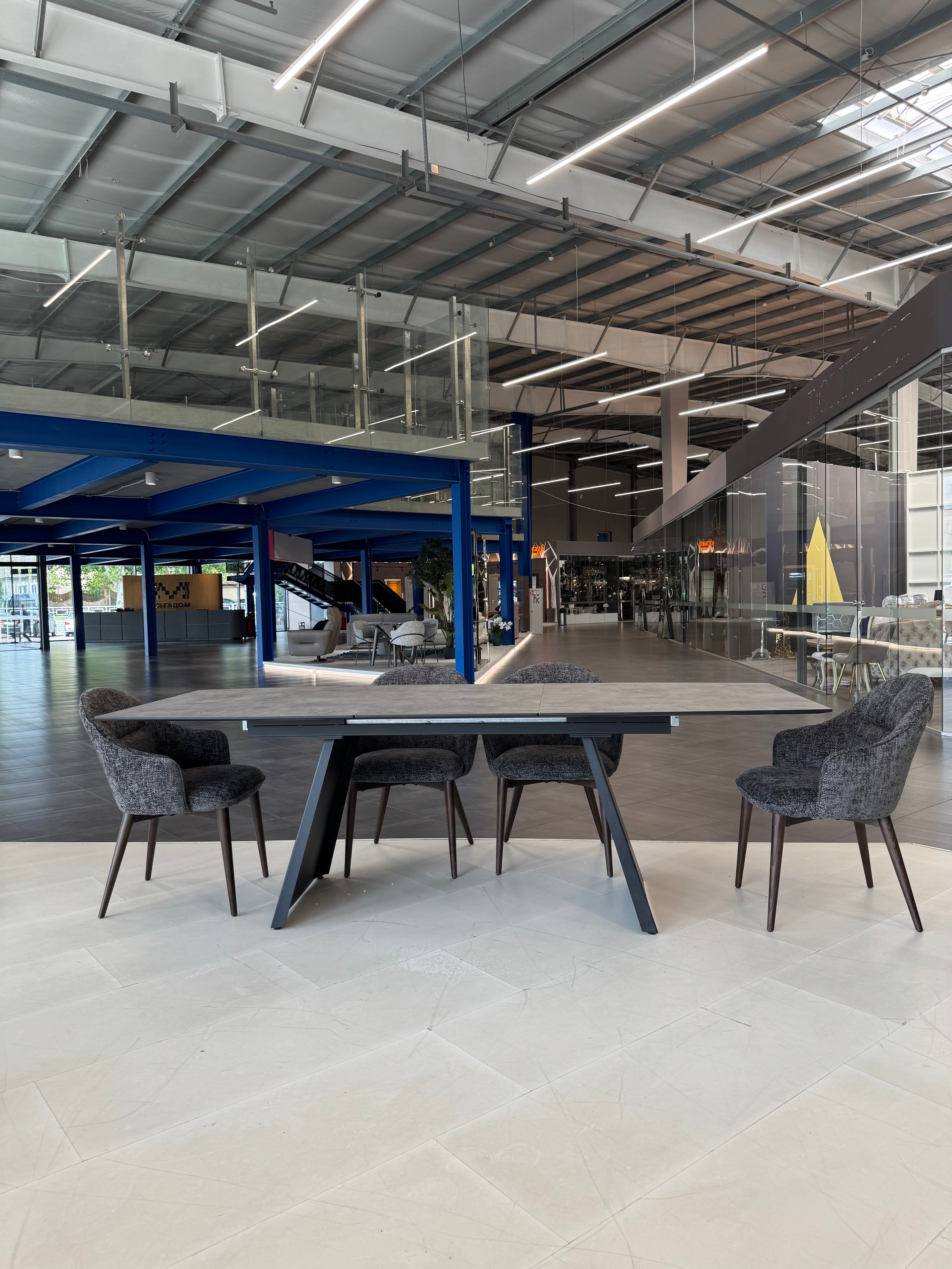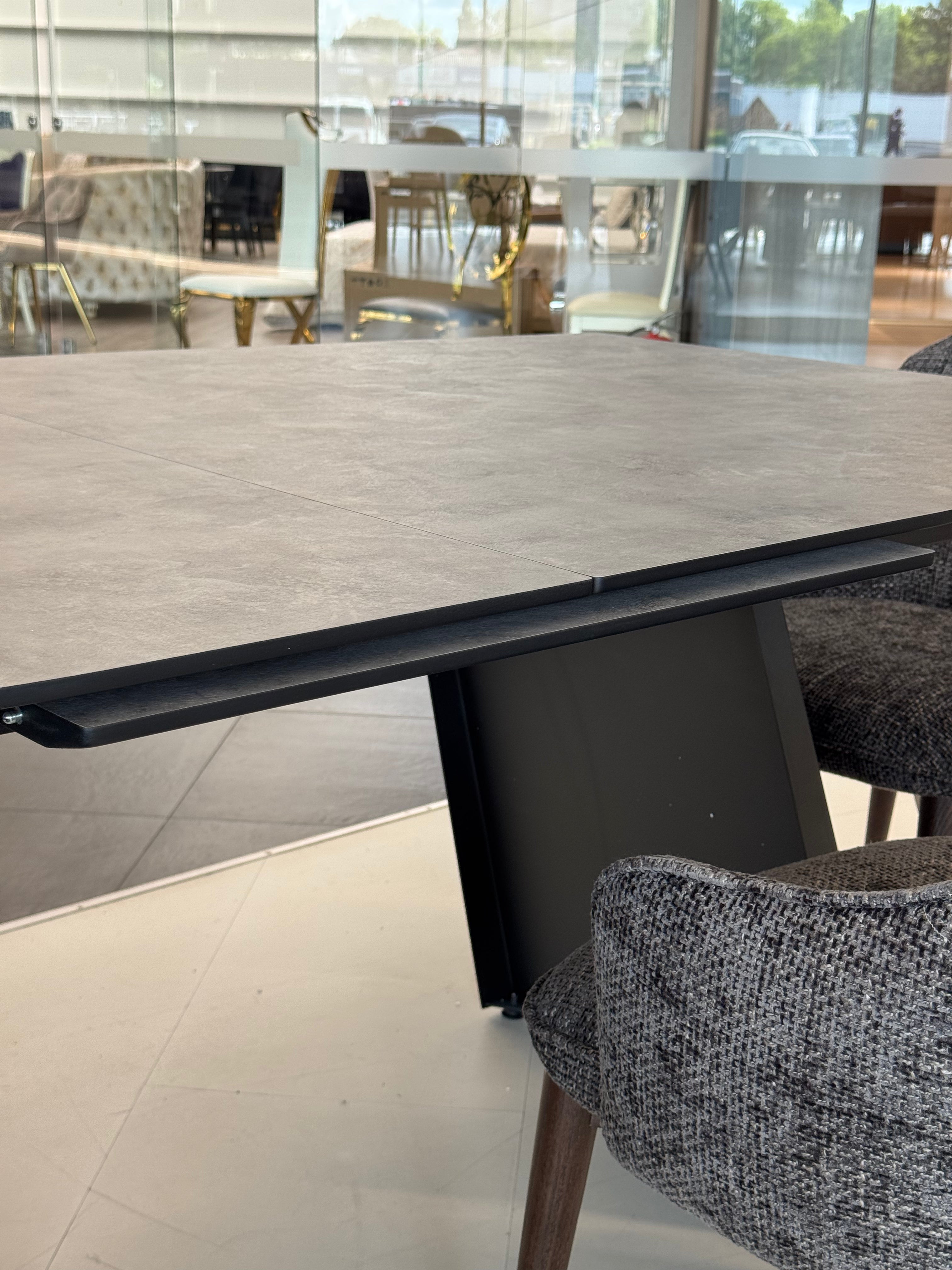 Стіл BELIZ — це ідеальне поєднання лаконічного дизайну, функціональності та сучасних матеріалів. Стільниця з матовим покриттям у відтінку "бетон" додає інтер'єру сучасного настрою, а лаконічні металеві ніжки забезпечують стійкість та візуальну легкість конструкції.