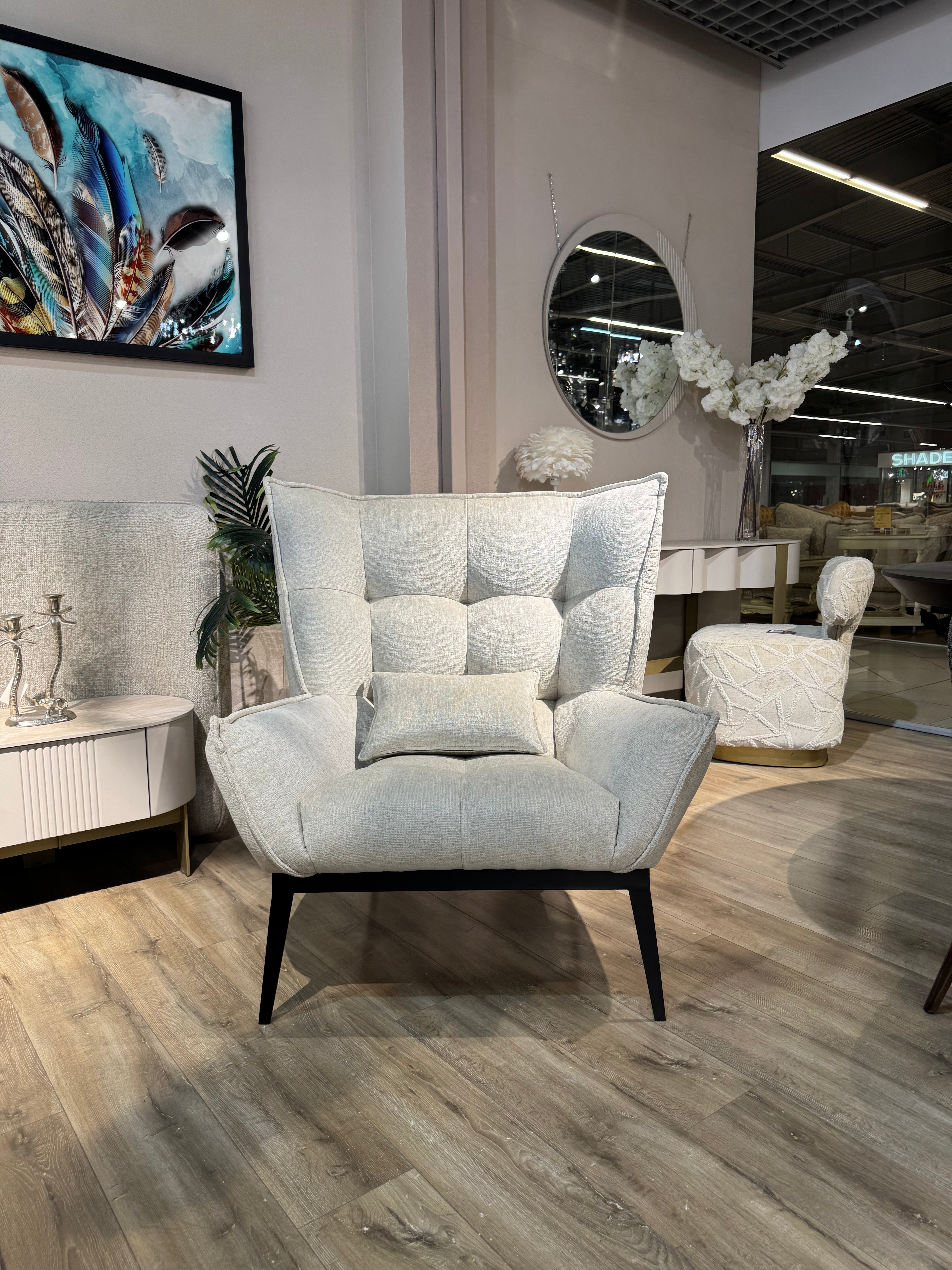 Крісло Лофти – стильне поєднання комфорту та сучасного дизайну. Глибока посадка, м’яка оббивка та ефектний стьобаний візерунок створюють затишну атмосферу. Металеві ніжки додають легкості конструкції та забезпечують стабільність. Ідеально підходить для вітальні, кабінету або зони відпочинку.