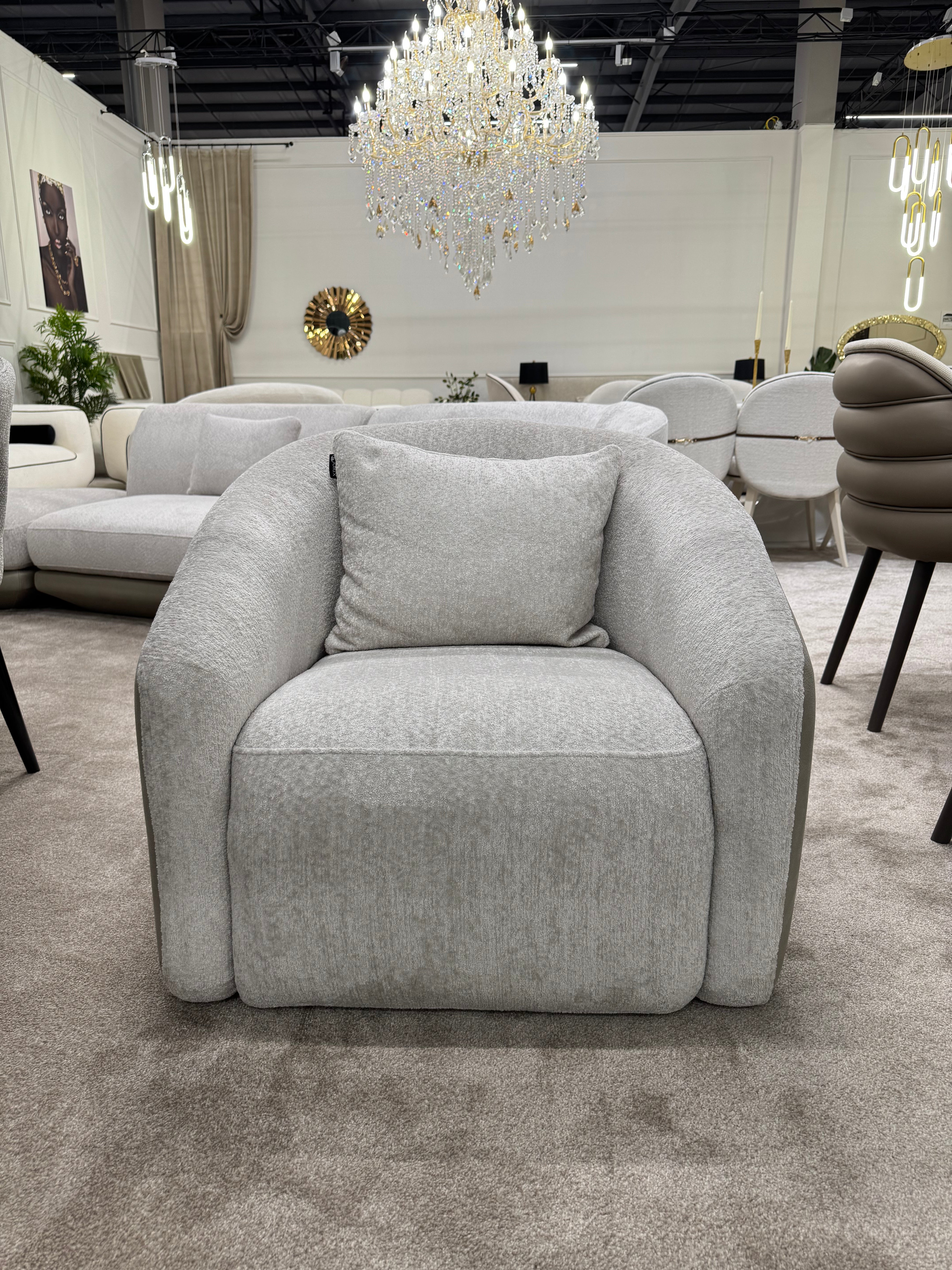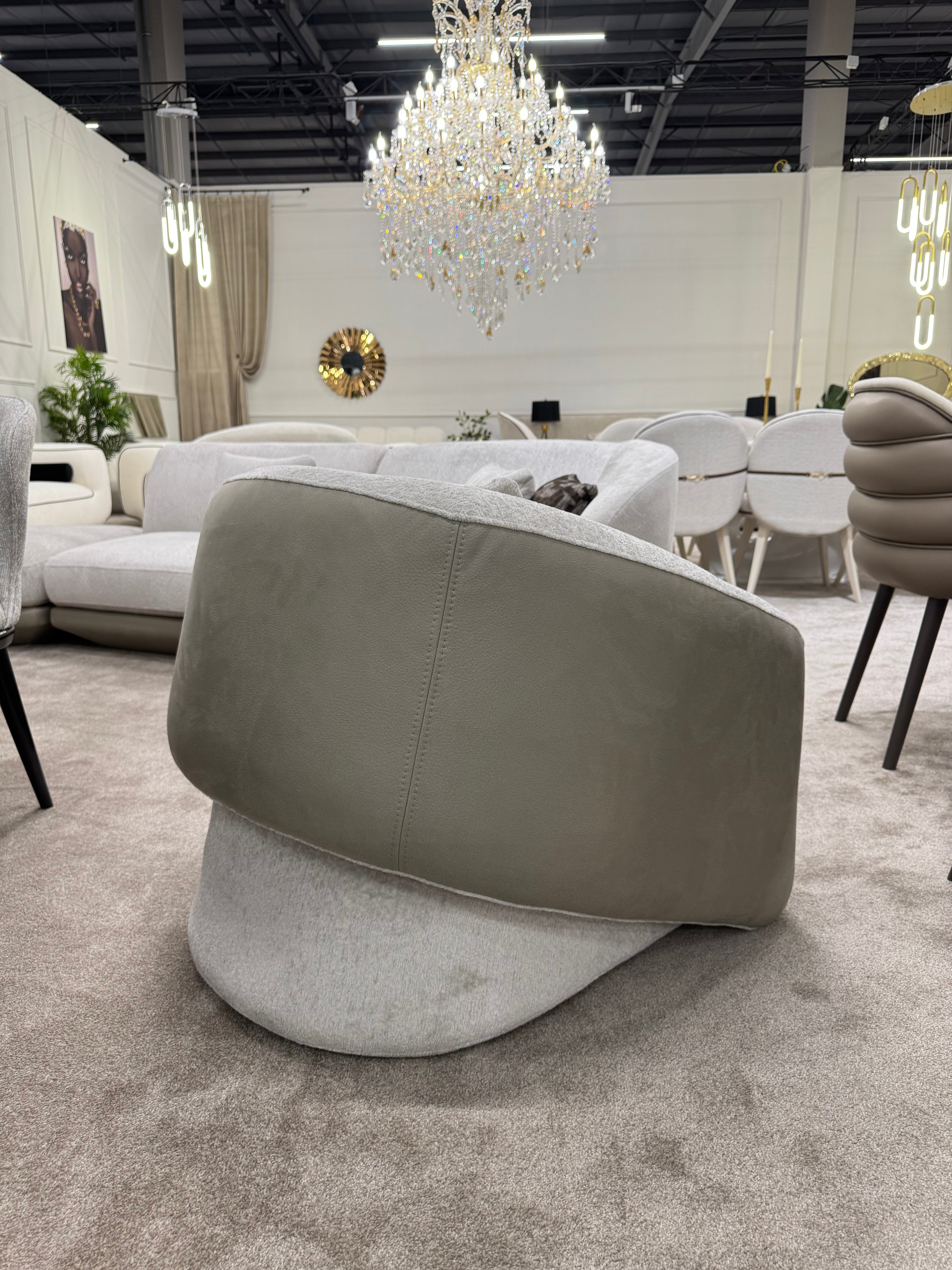 Крісло ICON поєднує в собі мінімалістичний дизайн, сучасні матеріали та максимальний комфорт. Його унікальна форма з плавними вигинами додає вишуканості, а поєднання двох типів оббивки створює цікавий візуальний ефект.