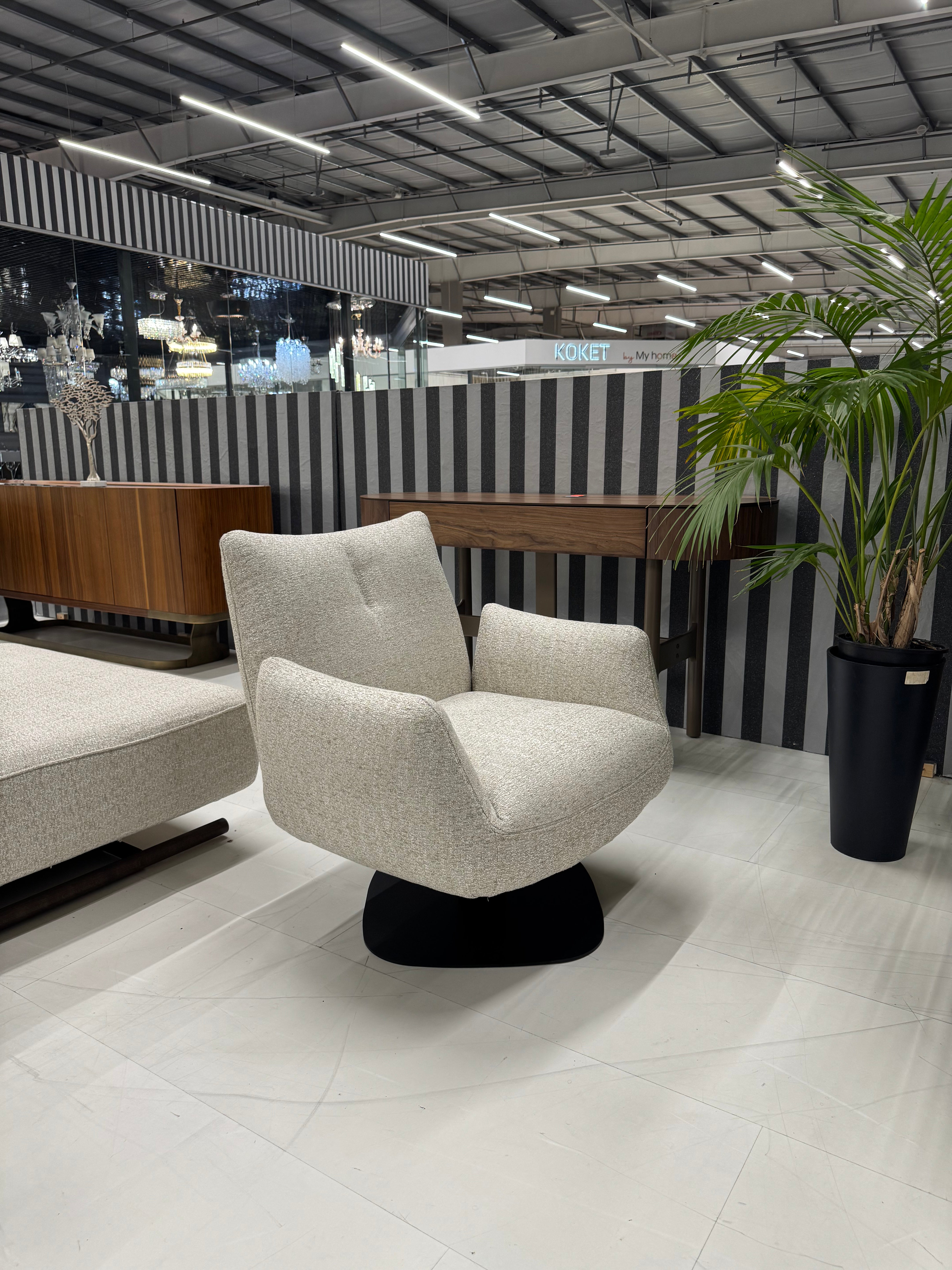 Крісло MILA поворотне — це стильна та сучасна модель, створена для максимального комфорту в зоні відпочинку. Завдяки м’якій посадці, ергономічній спинці та плавній поворотній базі воно дарує зручність під час читання, спілкування або перегляду фільмів. Дизайн крісла поєднує округлі лінії та стриману естетику, тому легко вписується в інтер’єри різних стилів — від мінімалізму до сучасної класики.