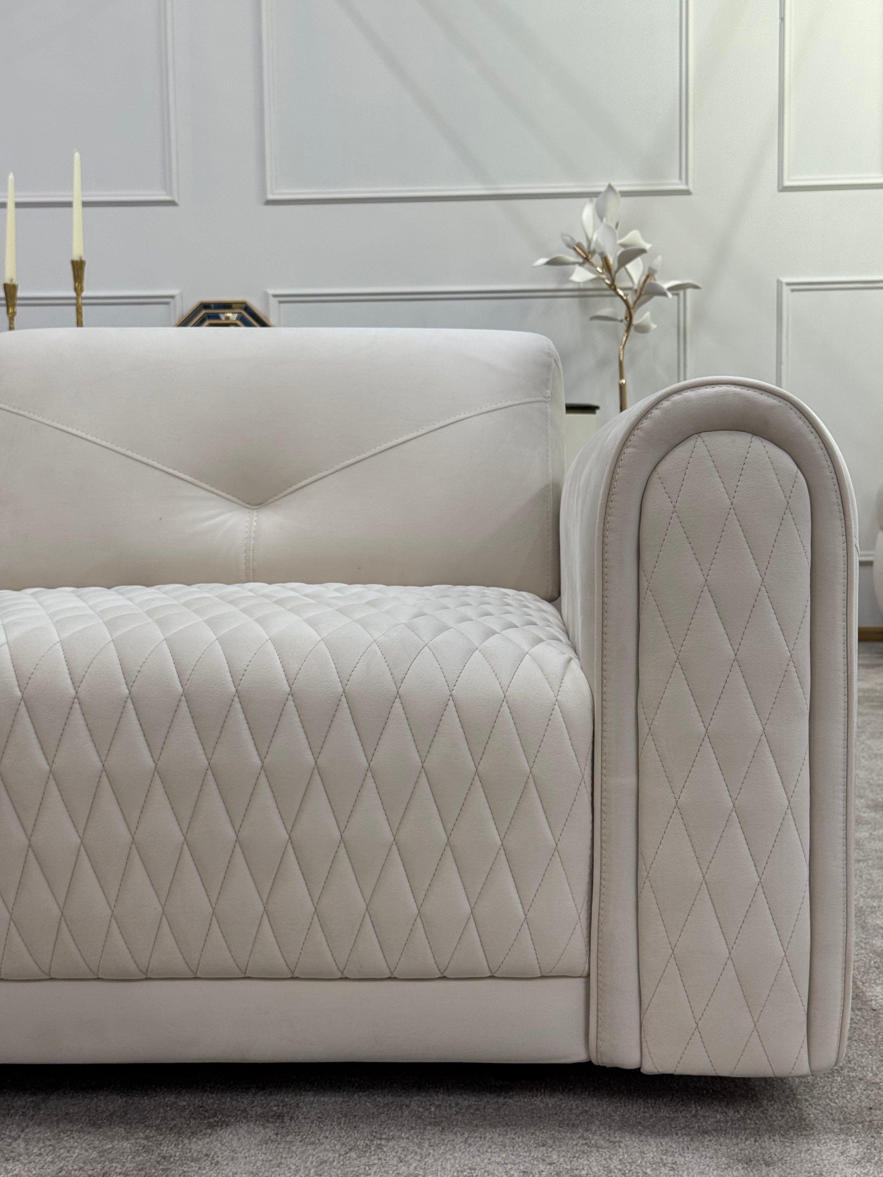 М’яка оббивка з велюру преміумкласу та декоративна стьобана текстура створюють вишуканий акцент у будь-якому інтер’єрі.