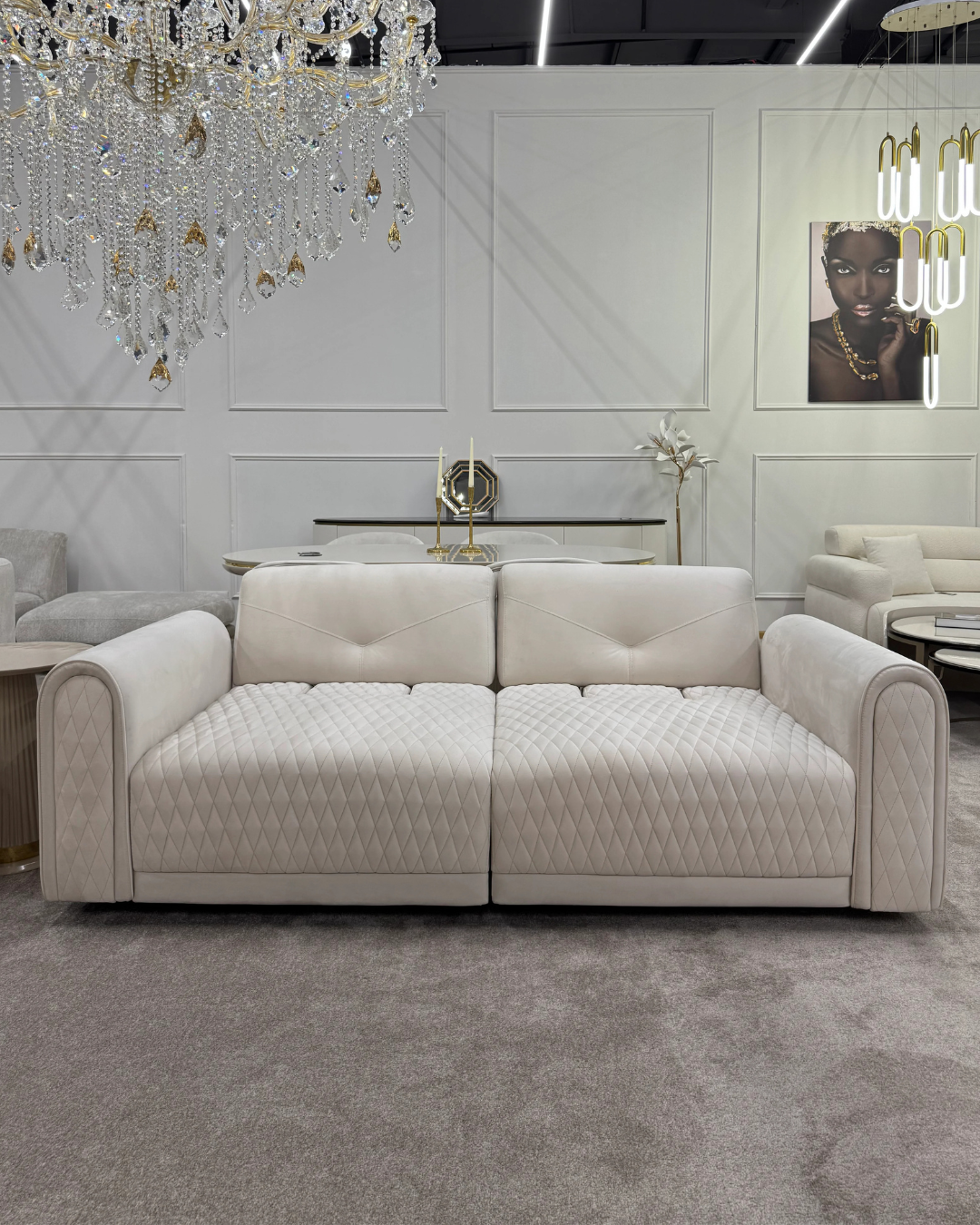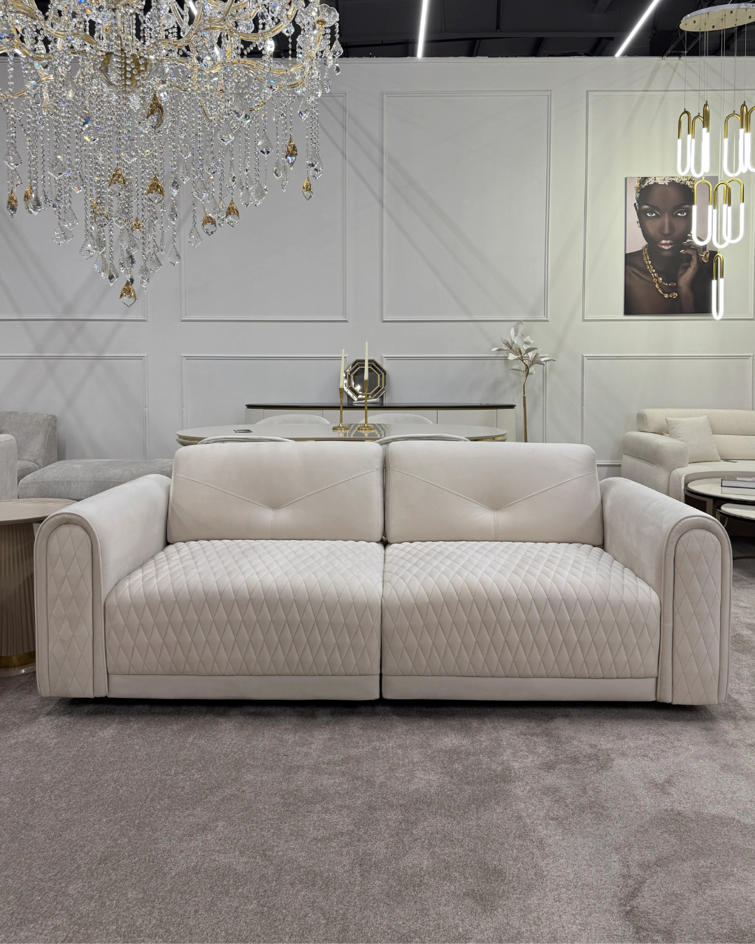 Просторі сидіння та зручна спинка забезпечують максимальний комфорт для відпочинку, а лаконічні форми додають інтер’єру стриманої розкоші. Ідеальний вибір для сучасної вітальні в стилі модерн або неокласика.