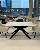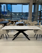 Стіл CAMEL – це стильне поєднання сучасної геометрії та вишуканого дизайну. Стільниця з ефектом мармуру додає елегантності, а масивна чорна основа надає конструкції стійкості та виразного характеру. Ідеальне рішення для тих, хто хоче створити у своєму інтер’єрі гармонійний акцент і підкреслити індивідуальність простору.