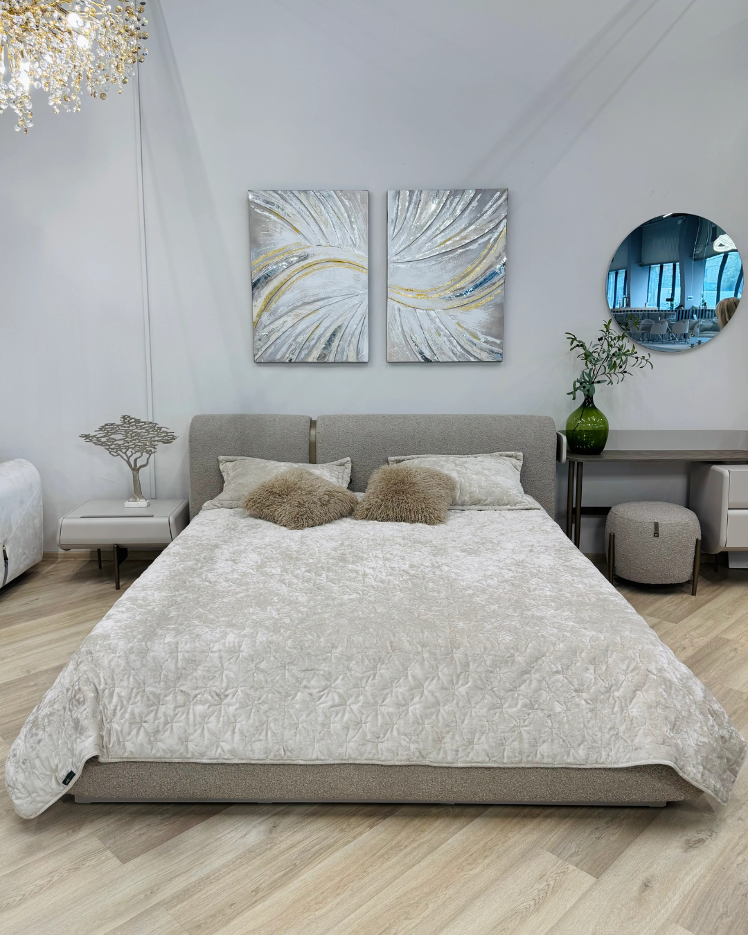Мінімалістичні форми, м’яке узголів’я та ніжна фактурна оббивка створюють атмосферу спокою та гармонії. Ліжко ідеально вписується у будь-який інтер’єр, додаючи йому легкості та вишуканості.
