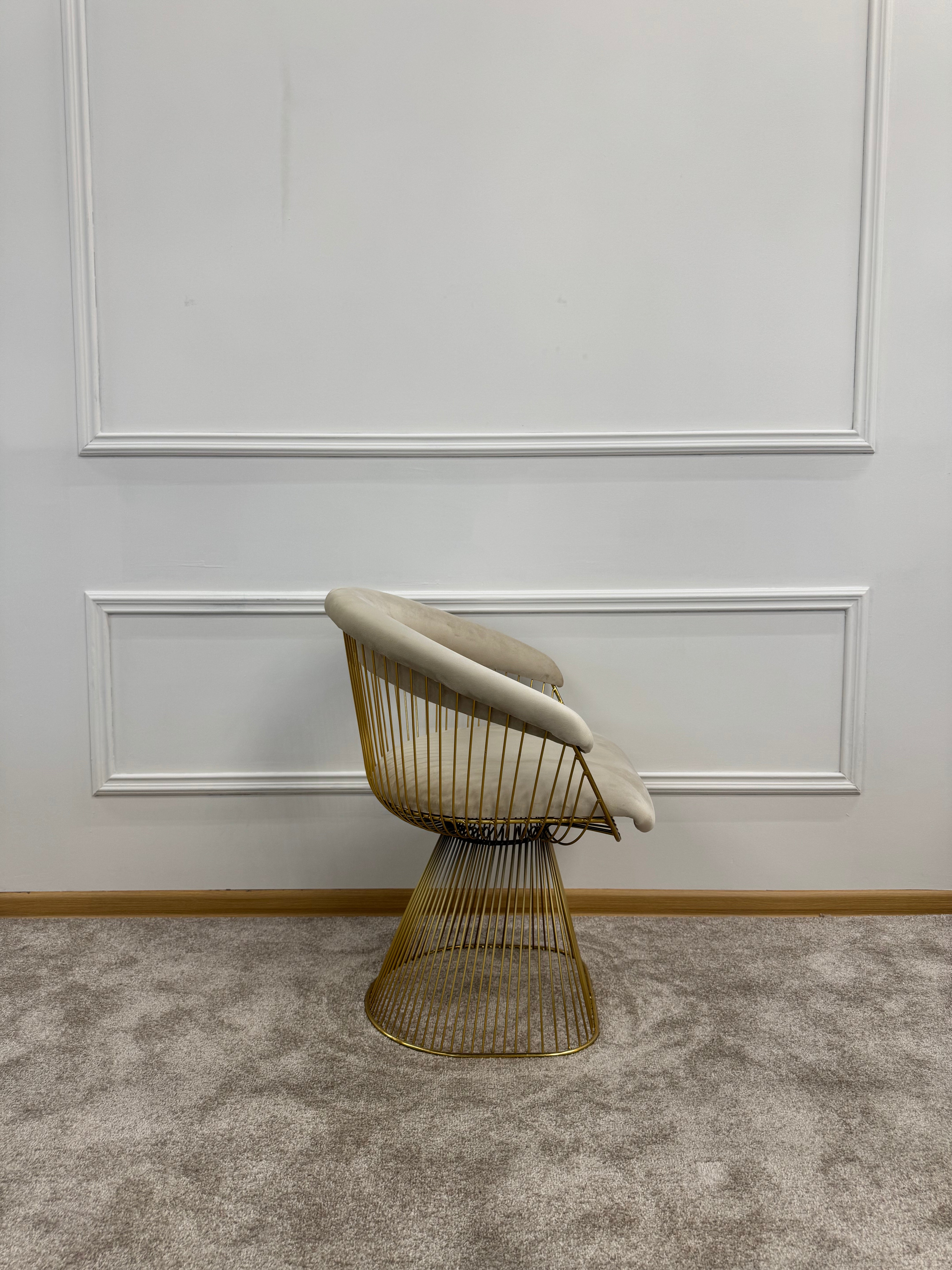 Стілець Asten — це поєднання сучасної елегантності, комфорту та стилю. Його витончений дизайн привертає увагу з першого погляду: тонкий металевий каркас із золотистим покриттям виглядає легко та повітряно, але водночас надійно й міцно. М’яке сидіння та ергономічна спинка створюють максимально комфортні умови для тривалого сидіння, підтримуючи правильну посадку.