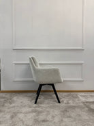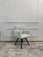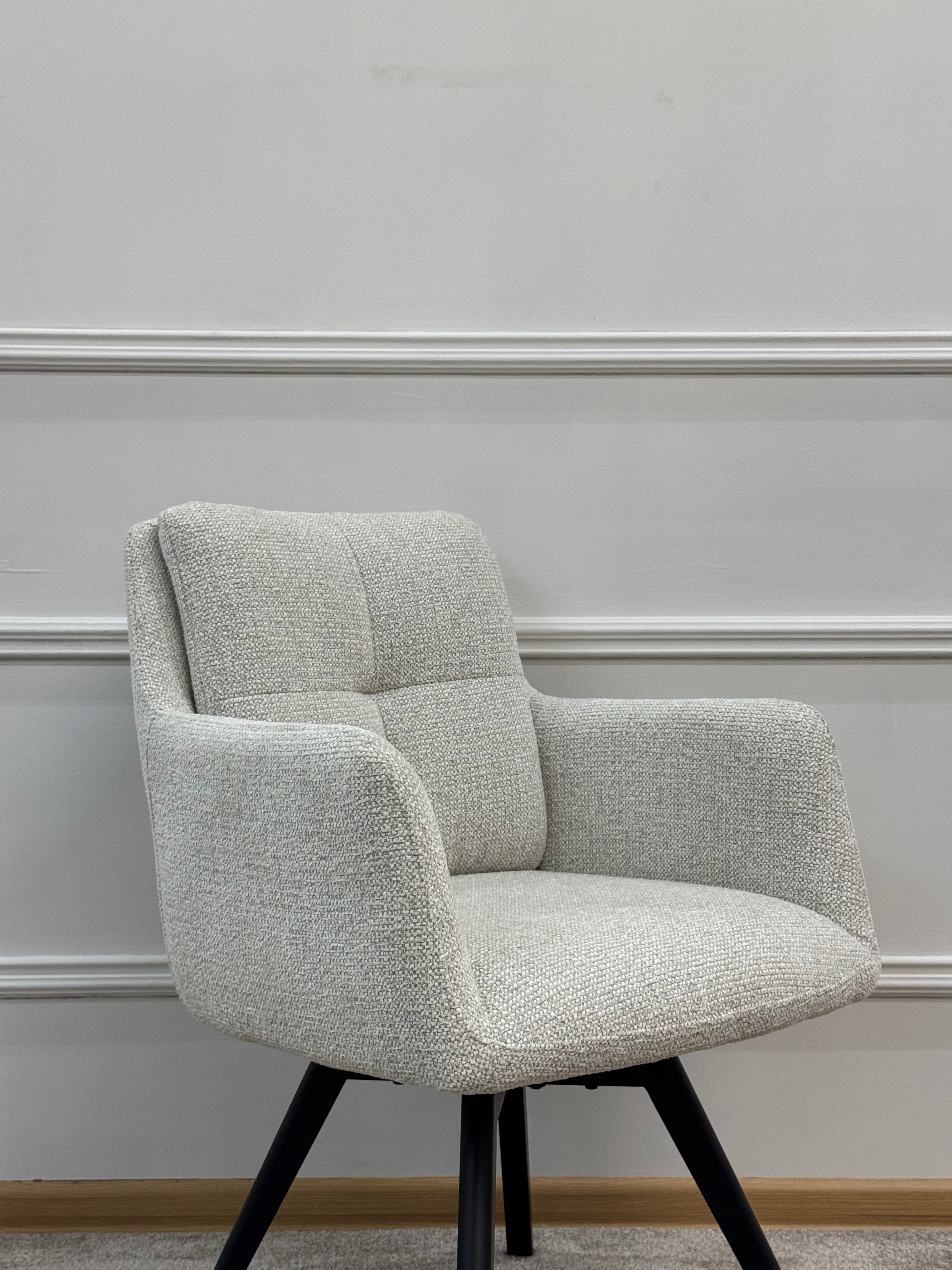 М’які підлокітники та продумана спинка створюють комфортну підтримку, а чорні металеві ніжки додають сучасності та стабільності конструкції.