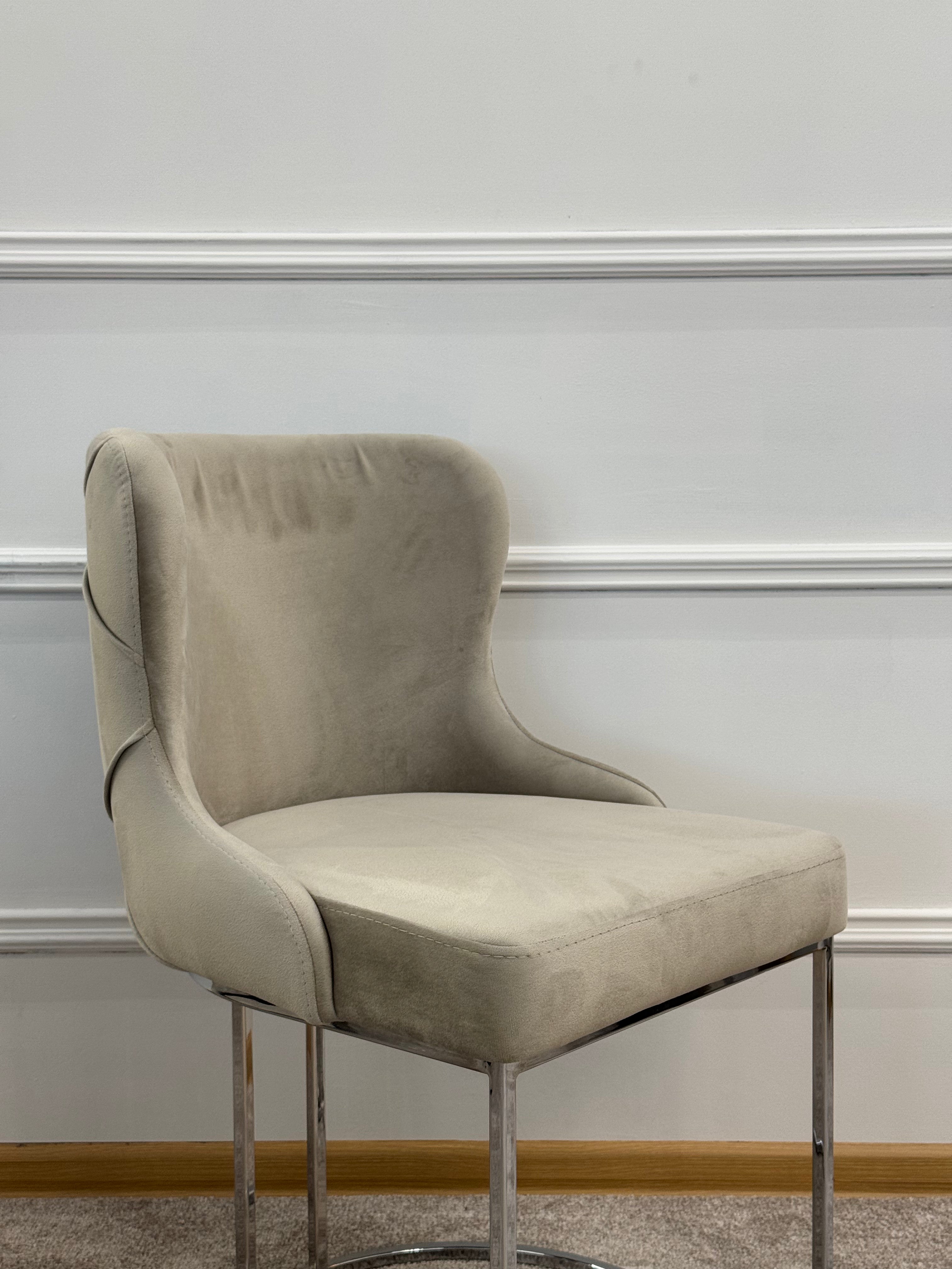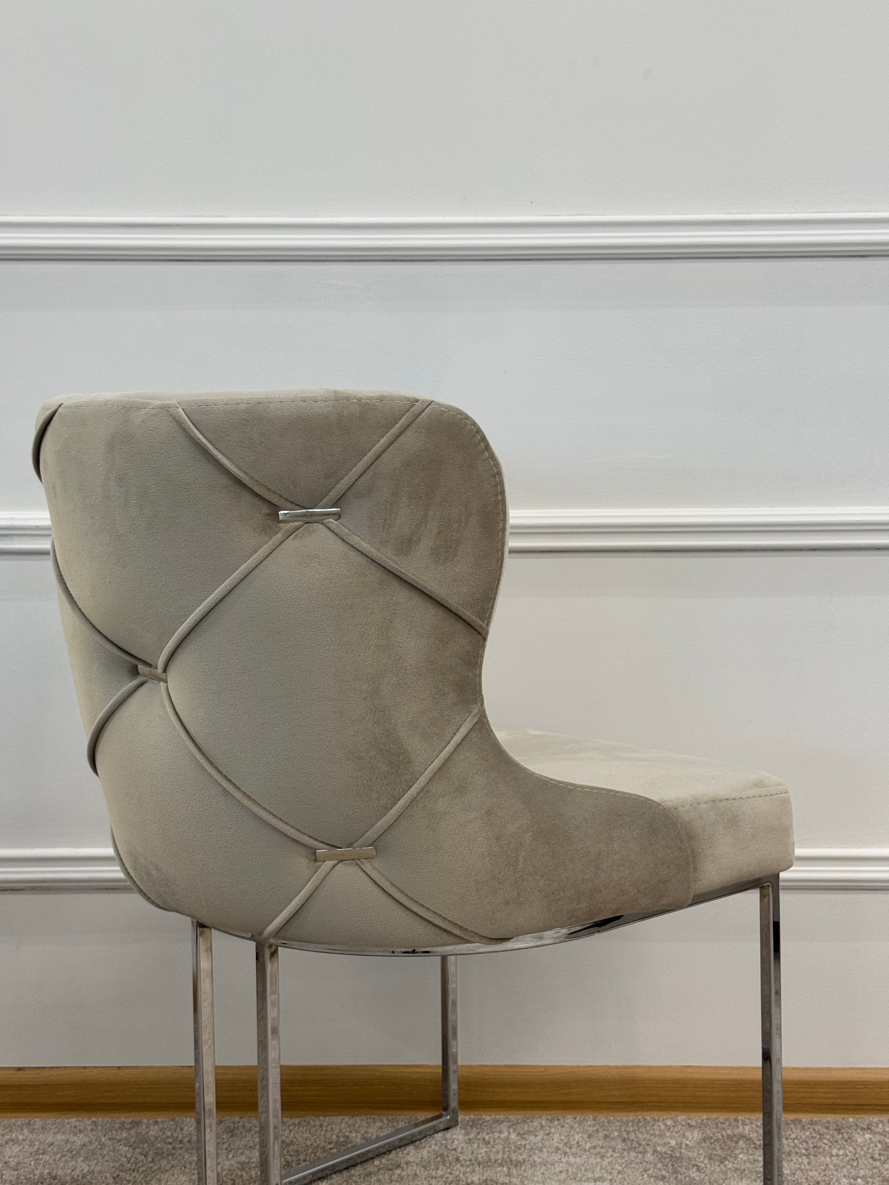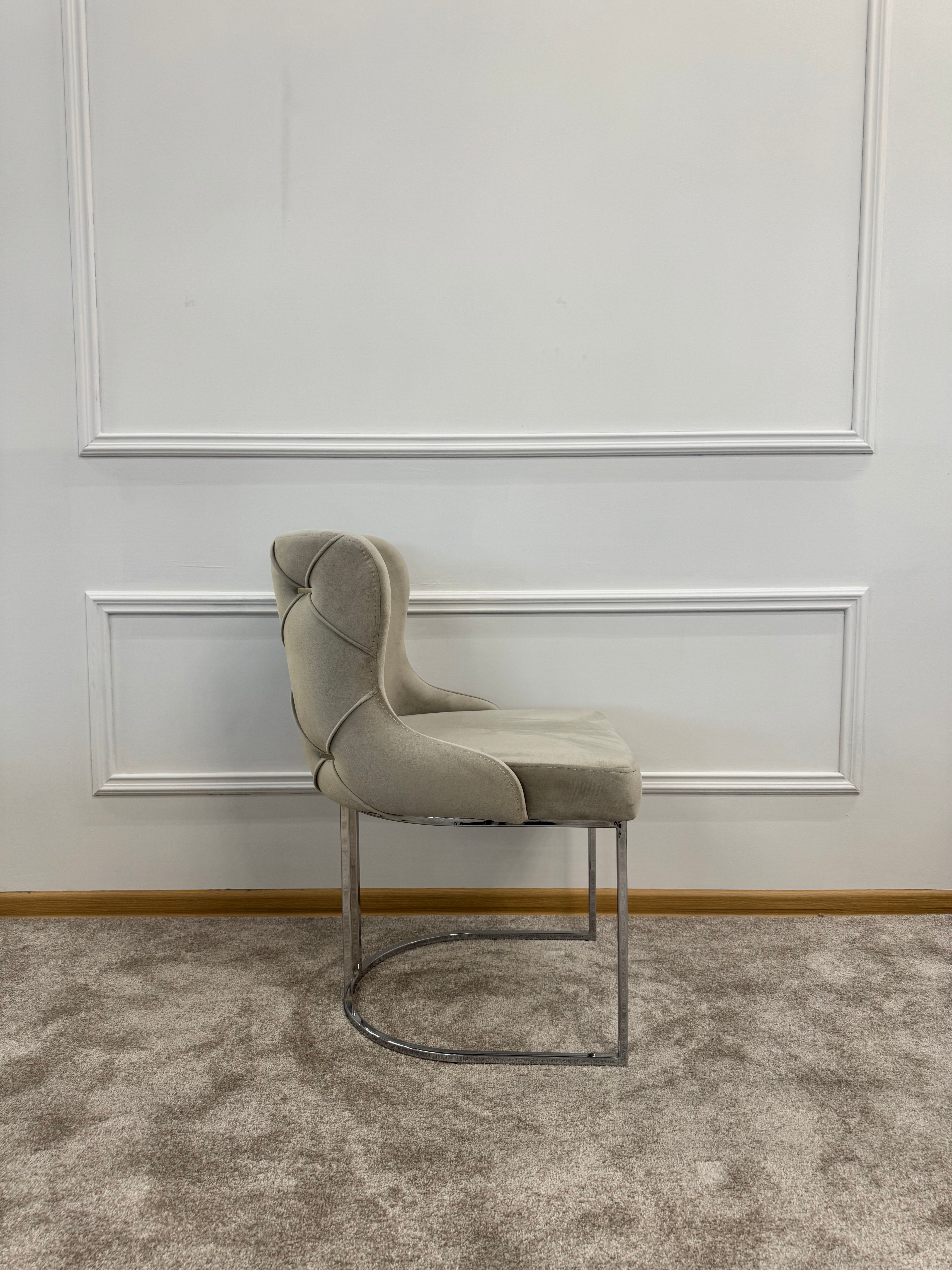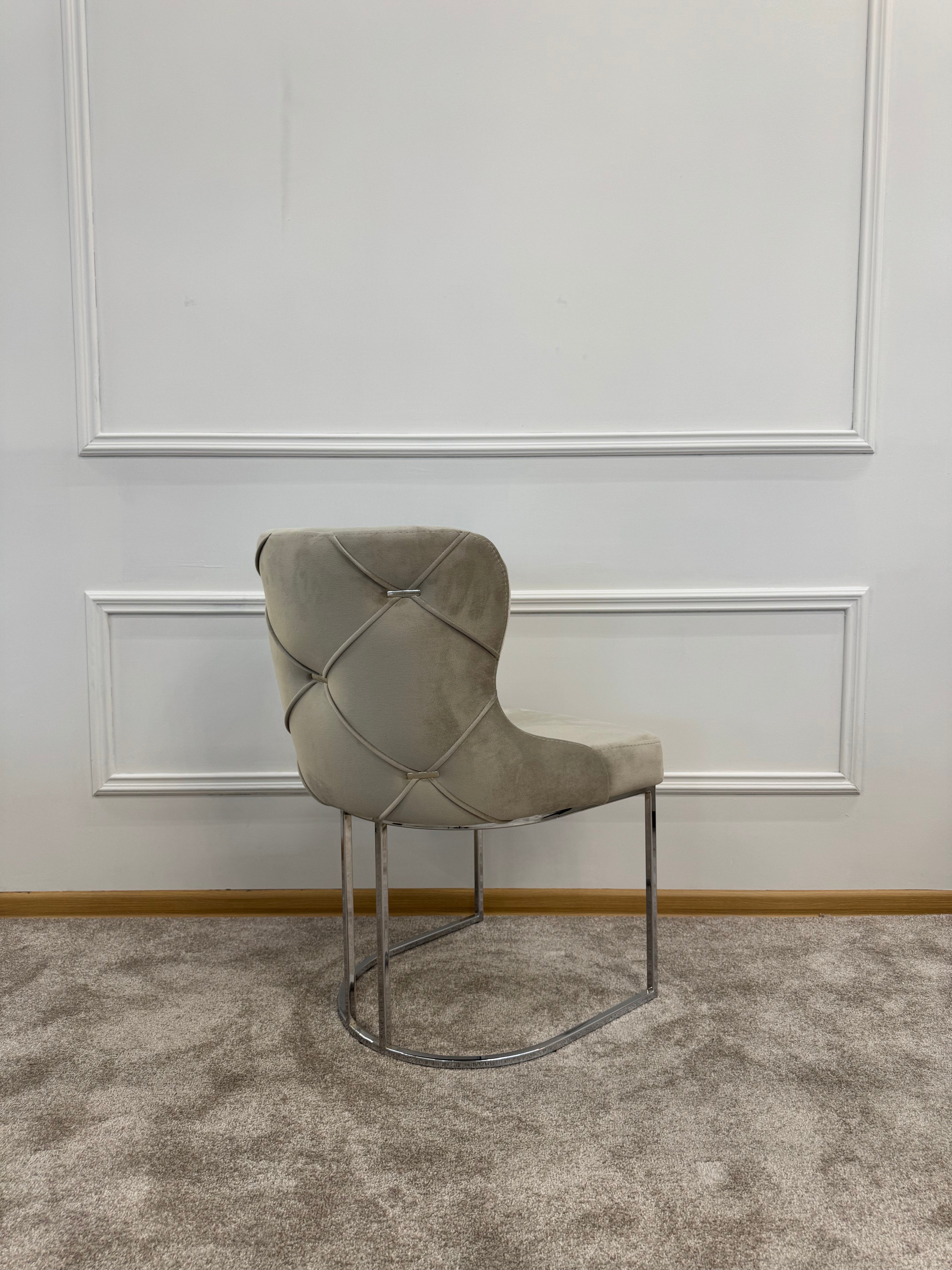 Стілець DIOR з хромованим каркасом — ідеальний варіант для сучасного інтер'єру. М’яка оксамитова оббивка, ергономічна спинка та глибоке сидіння забезпечують максимальний комфорт.