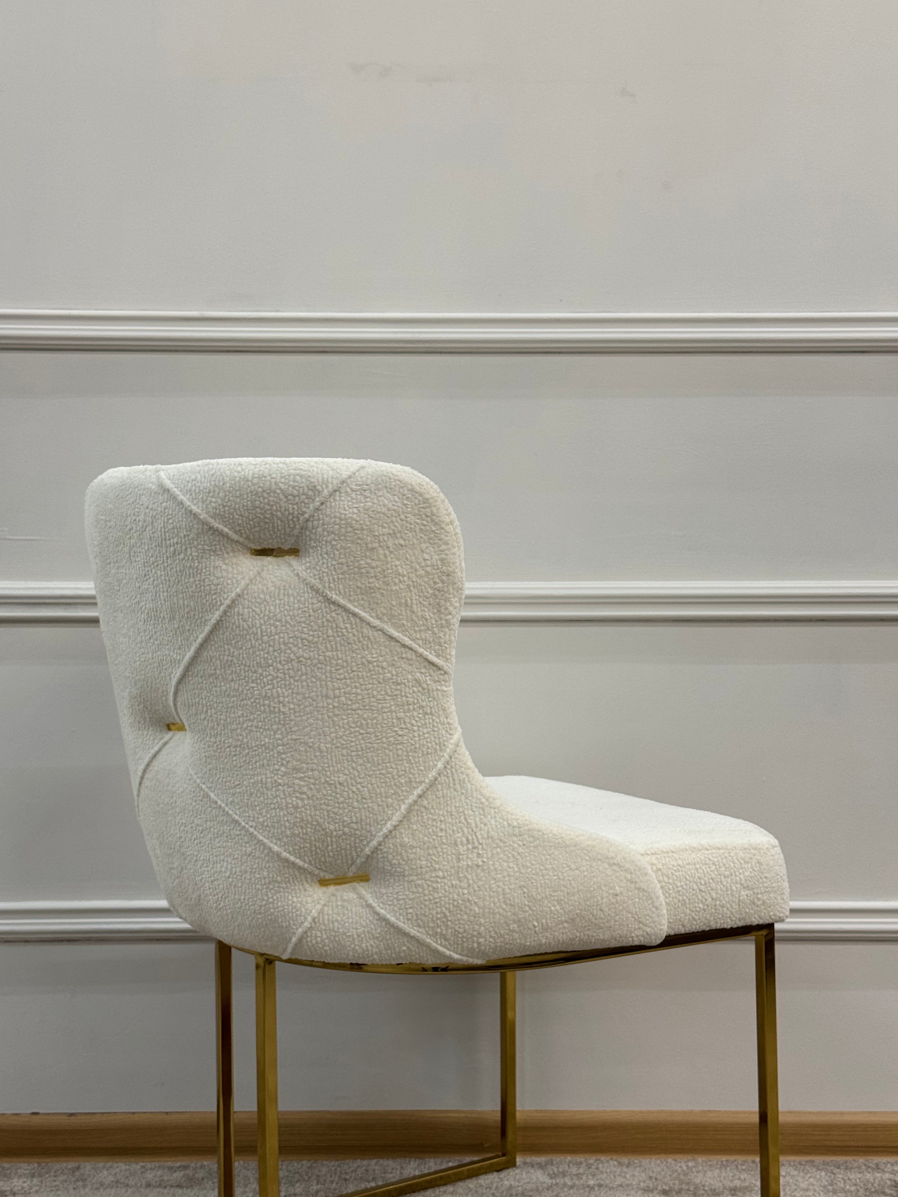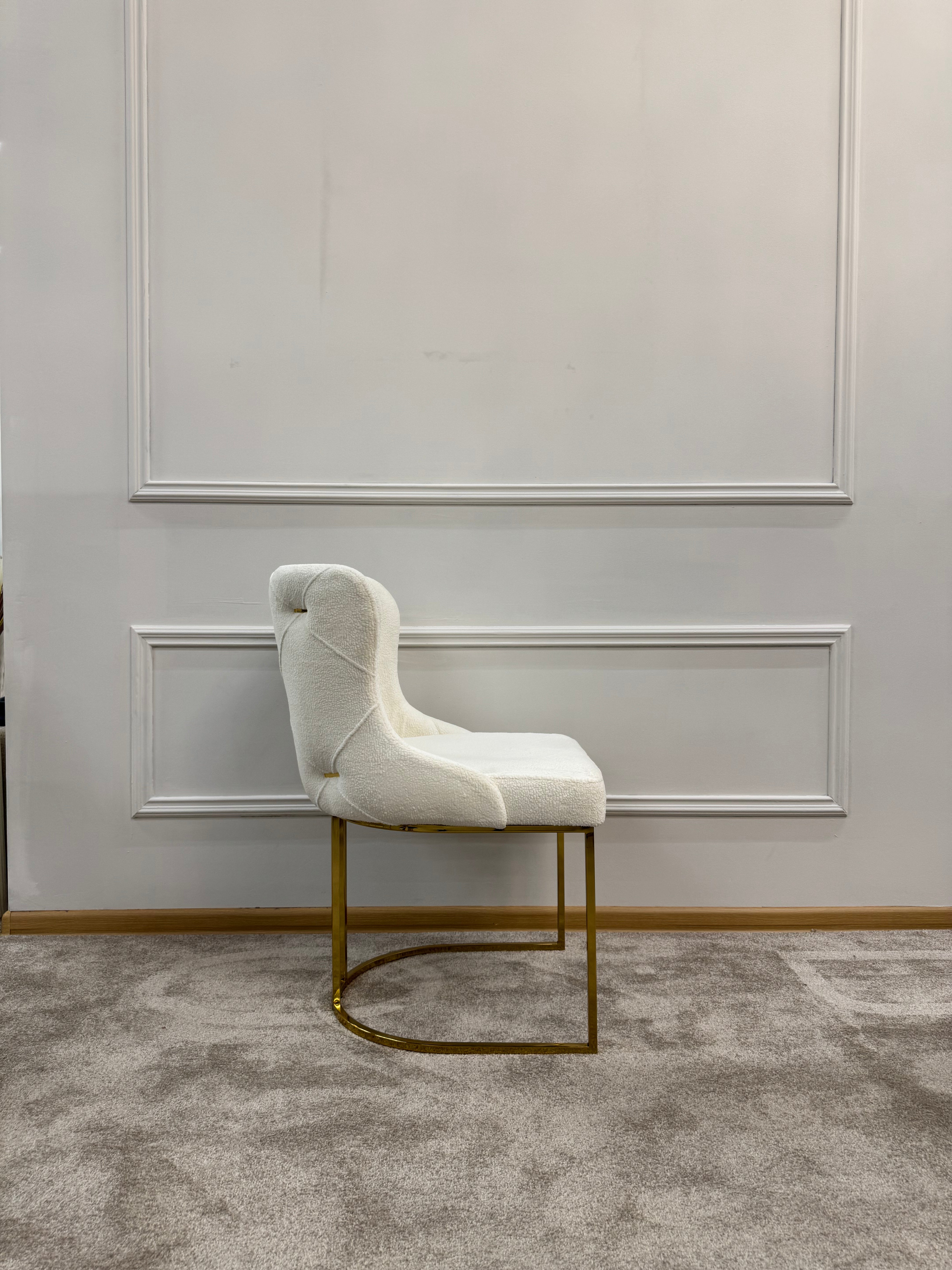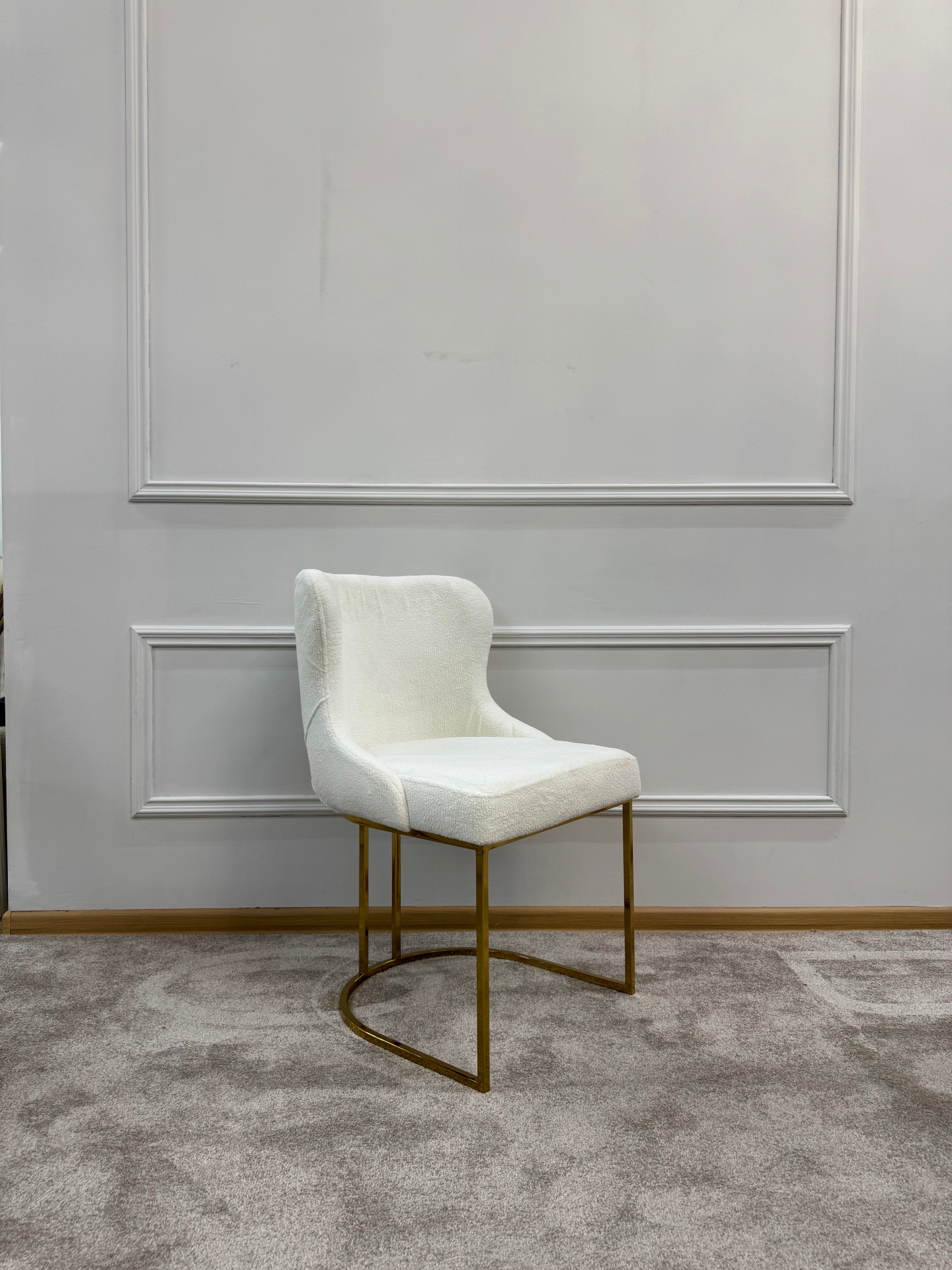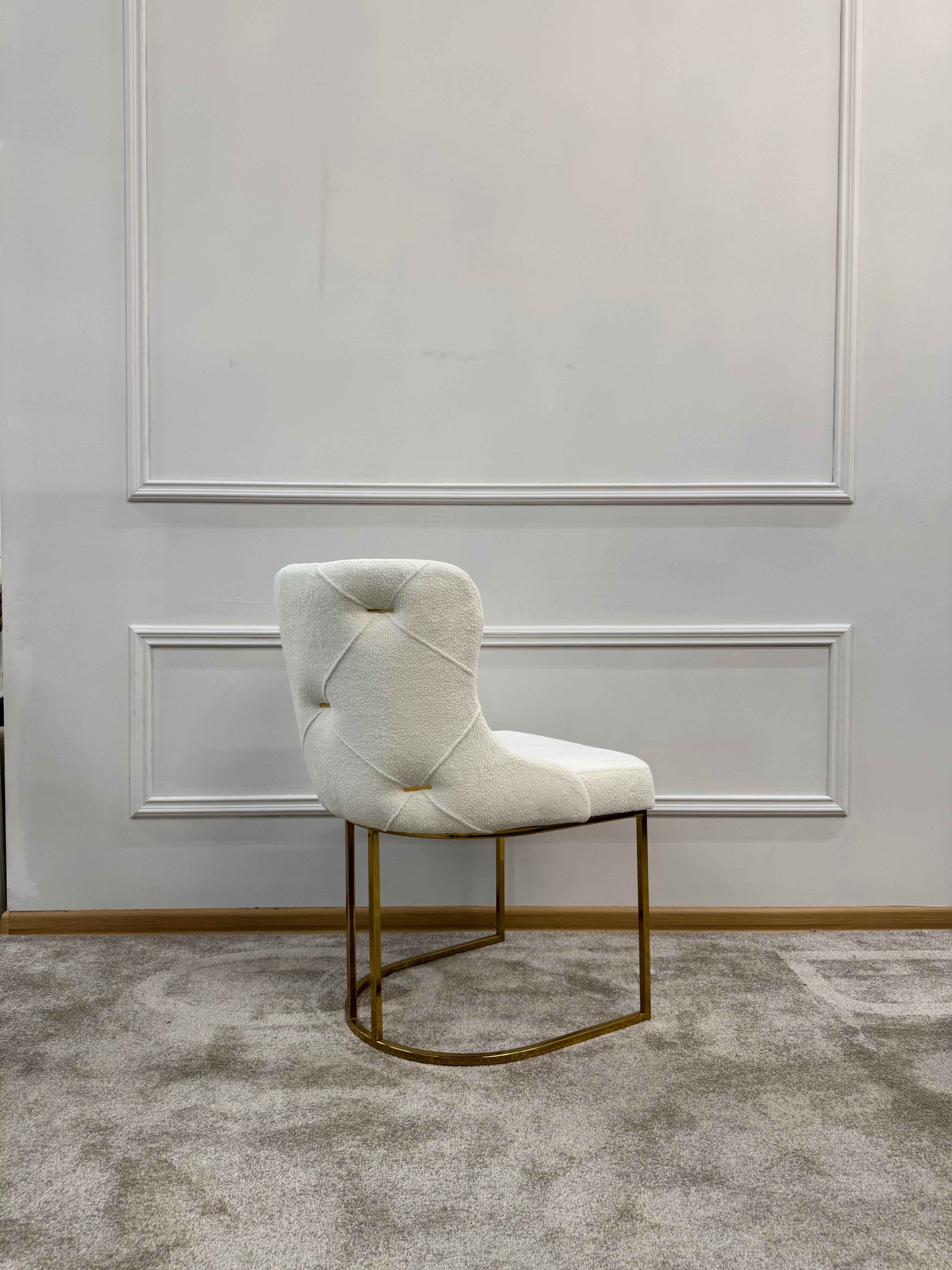 Металеві ніжки із золотим покриттям додають елегантності та роблять дизайн особливо розкішним. Цей стілець гармонійно впишеться як у сучасну обідню зону, так і в інтер’єр із нотами гламуру чи мінімалізму.