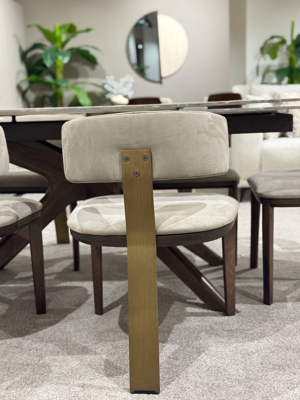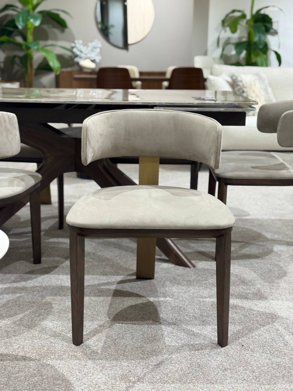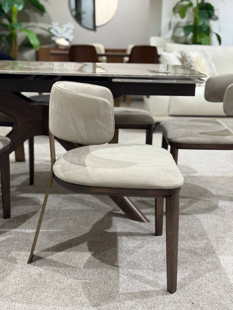 Дерев’яна основа з благородним відтінком надає стільцю стабільності та відчуття природної теплоти, а текстильна оббивка додає затишку та візуальної м’якості. ERA легко поєднується з різними столами та гармонійно виглядає як у їдальні, так і у вітальні.
