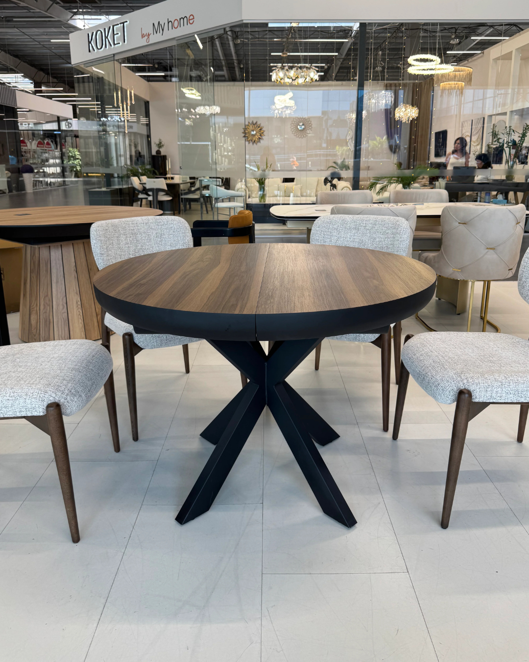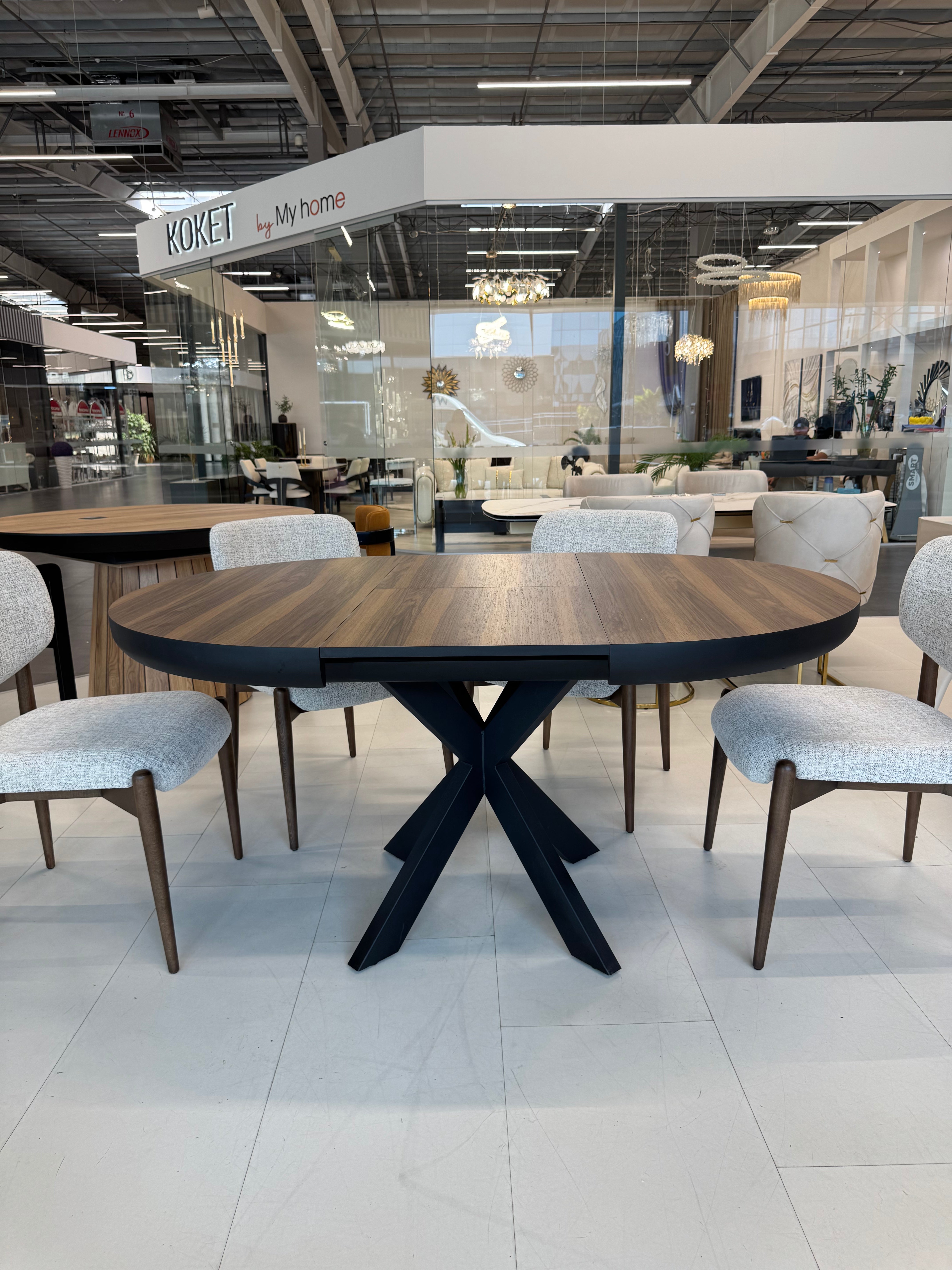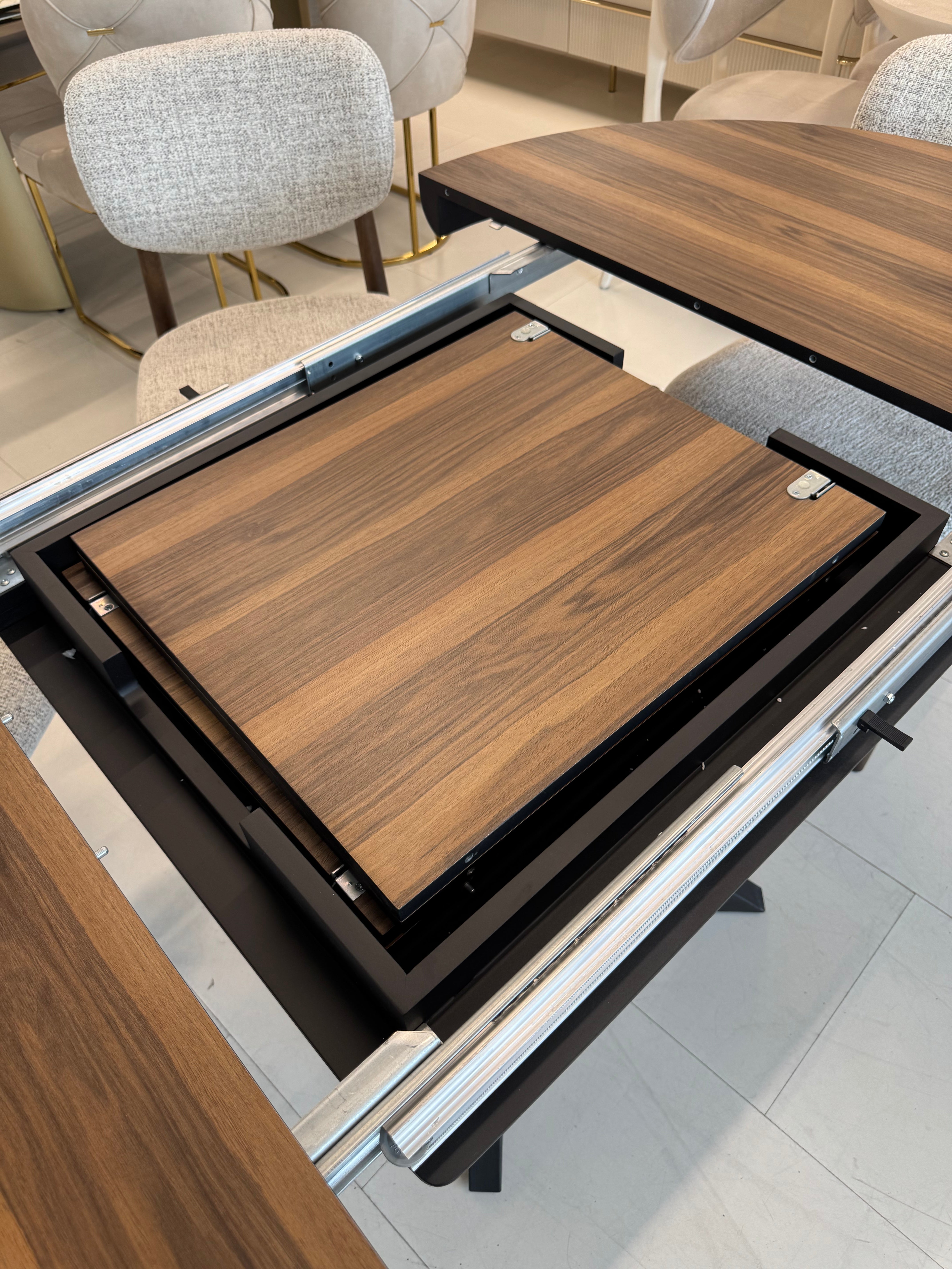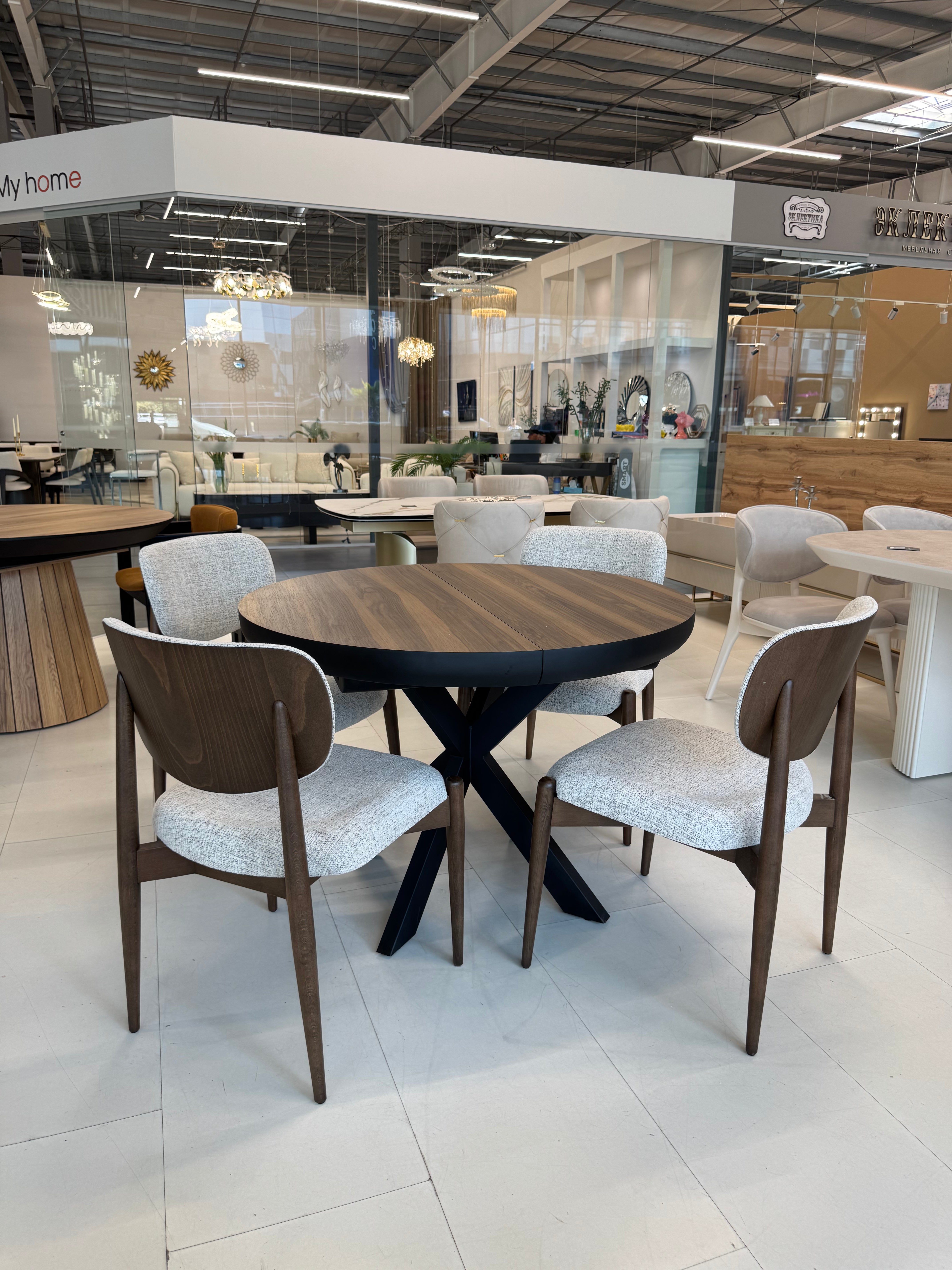 Кругла форма створює атмосферу затишку та сприяє комфортному спілкуванню за столом, а розкладний механізм (48+48 см) дозволяє легко збільшити простір для гостей.