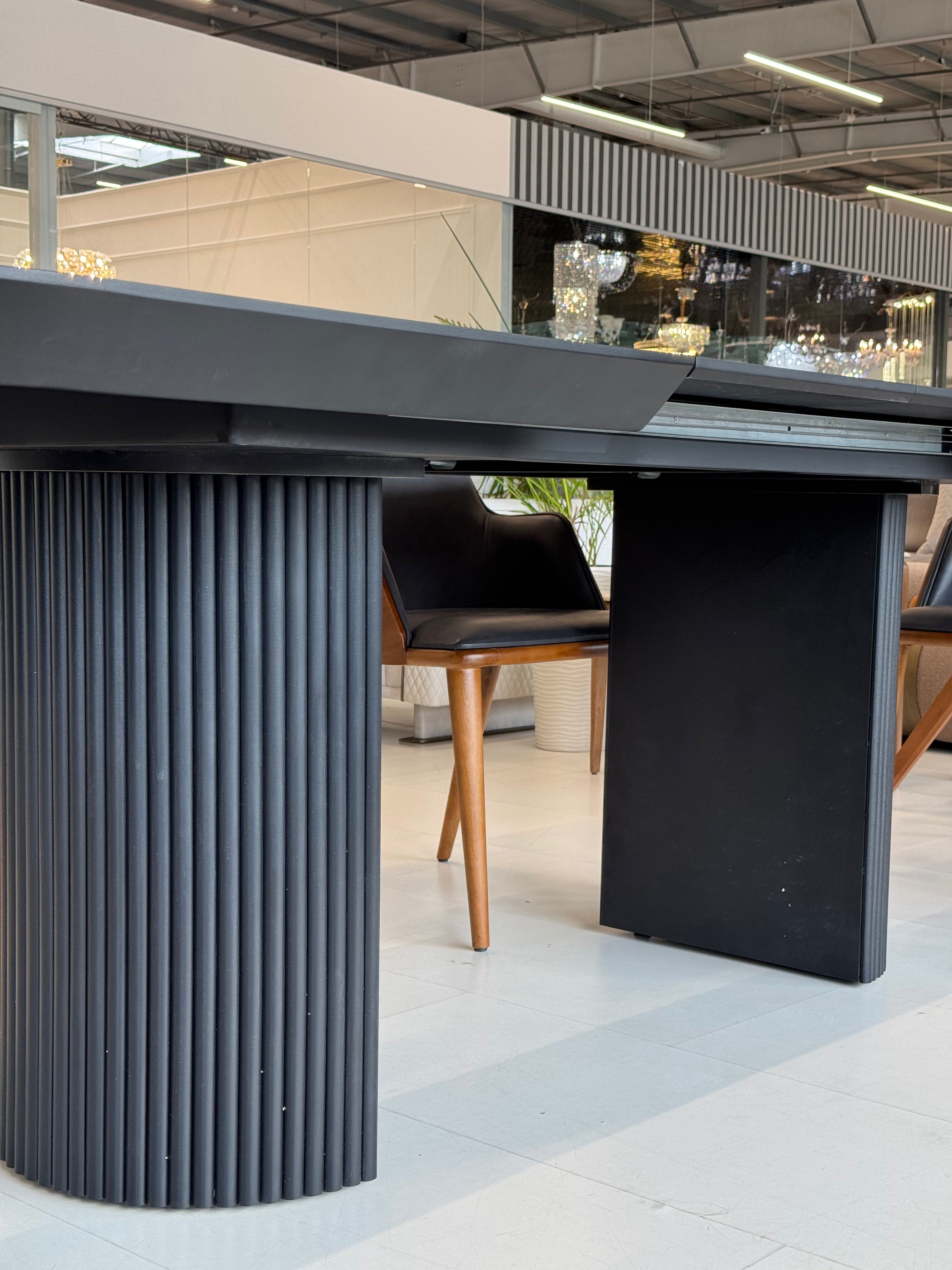 Стіл TEMPO 200 — це сучасна модель з лаконічним дизайном і строгими формами, яка гармонійно впишеться як у класичний, так і в сучасний інтер’єр. Завдяки розсувному механізму стіл легко трансформується для більшої кількості гостей, а масивні опори з декоративними вертикальними лініями додають конструкції стабільності та візуальної виразності.