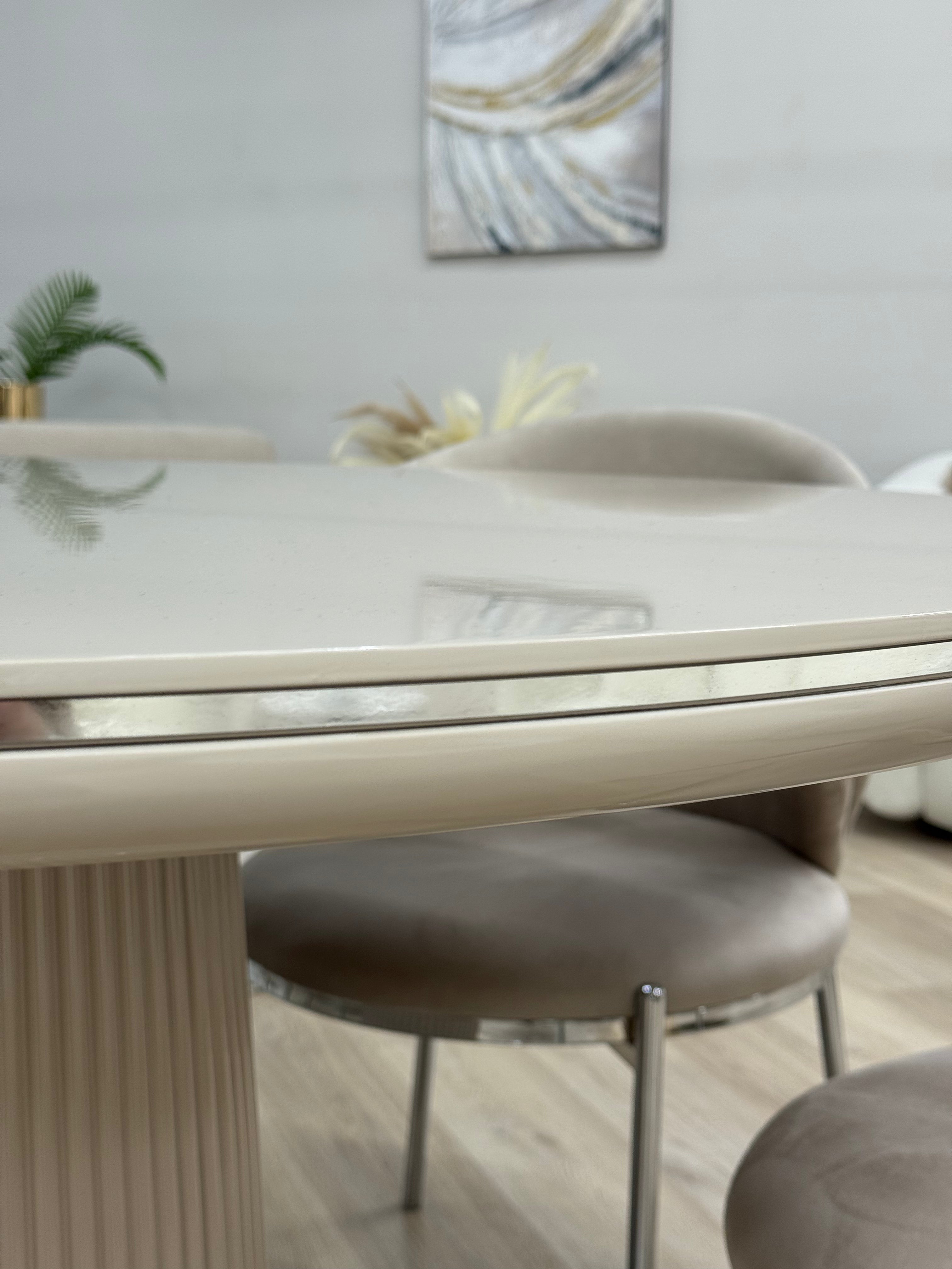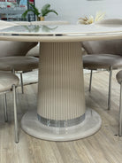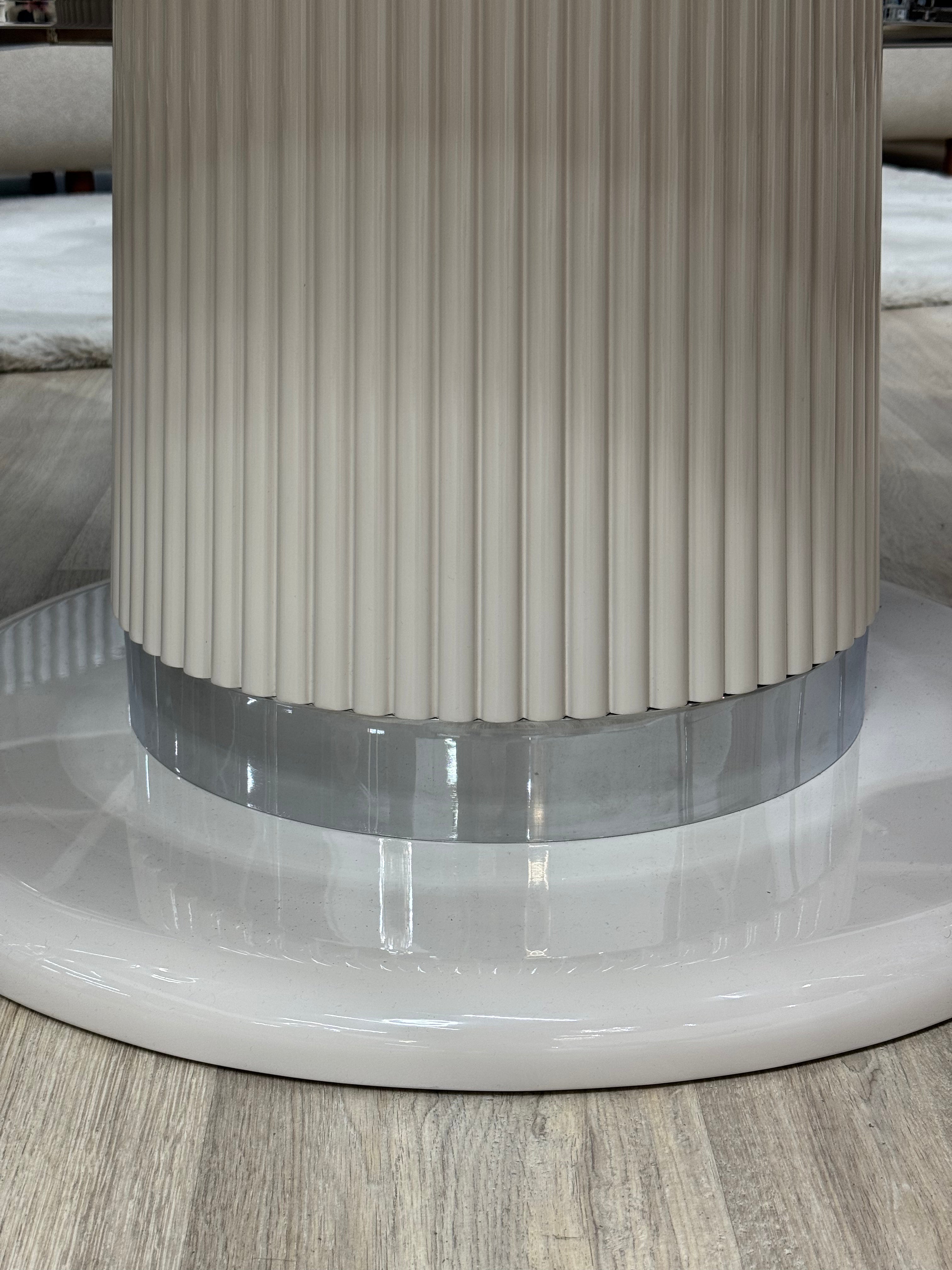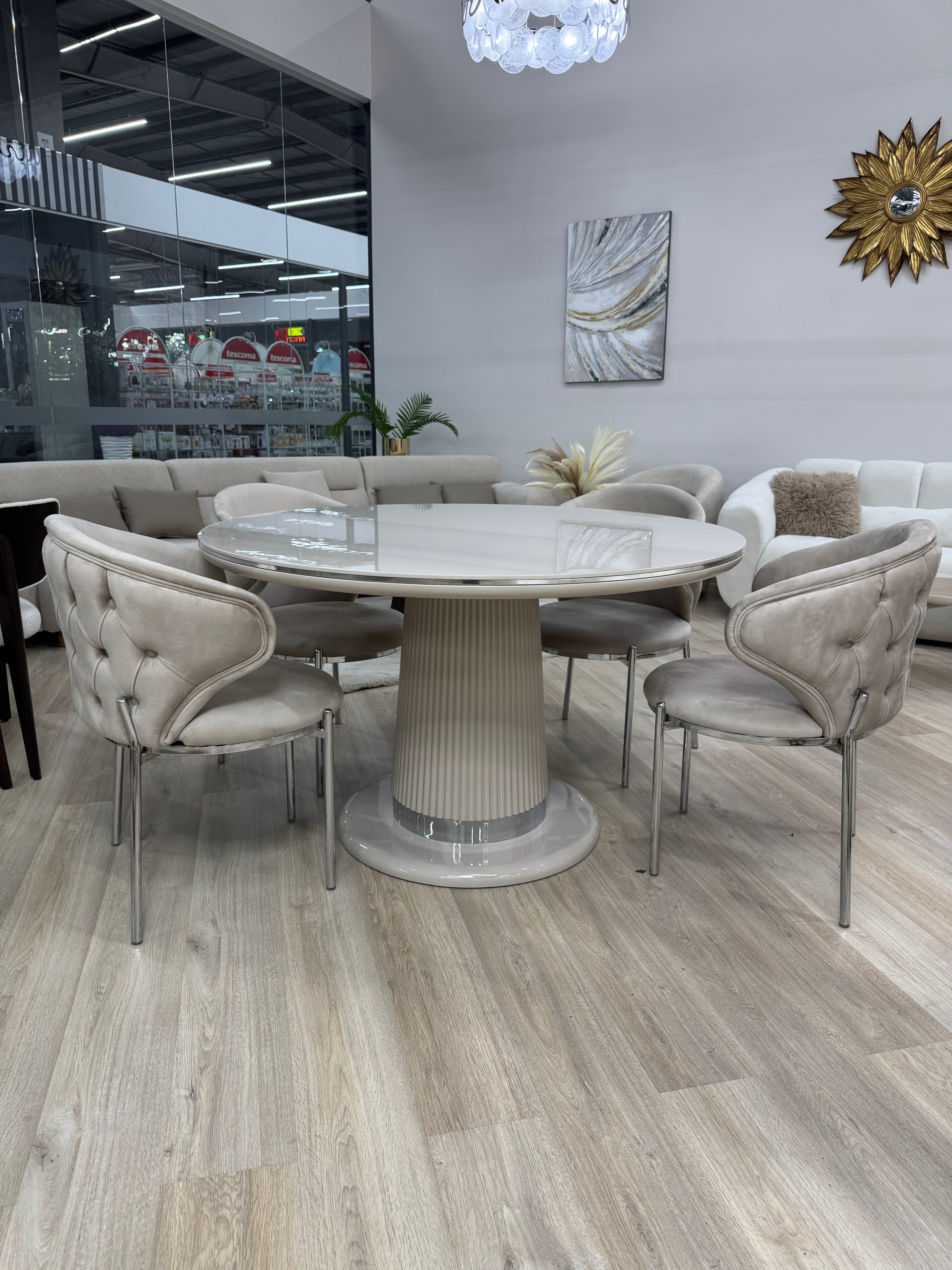Стіл VALENTINO — це поєднання елегантного дизайну та сучасної функціональності. Міцна стільниця, стійка опора та преміальні матеріали роблять його ідеальним вибором для вашої їдальні або вітальні.