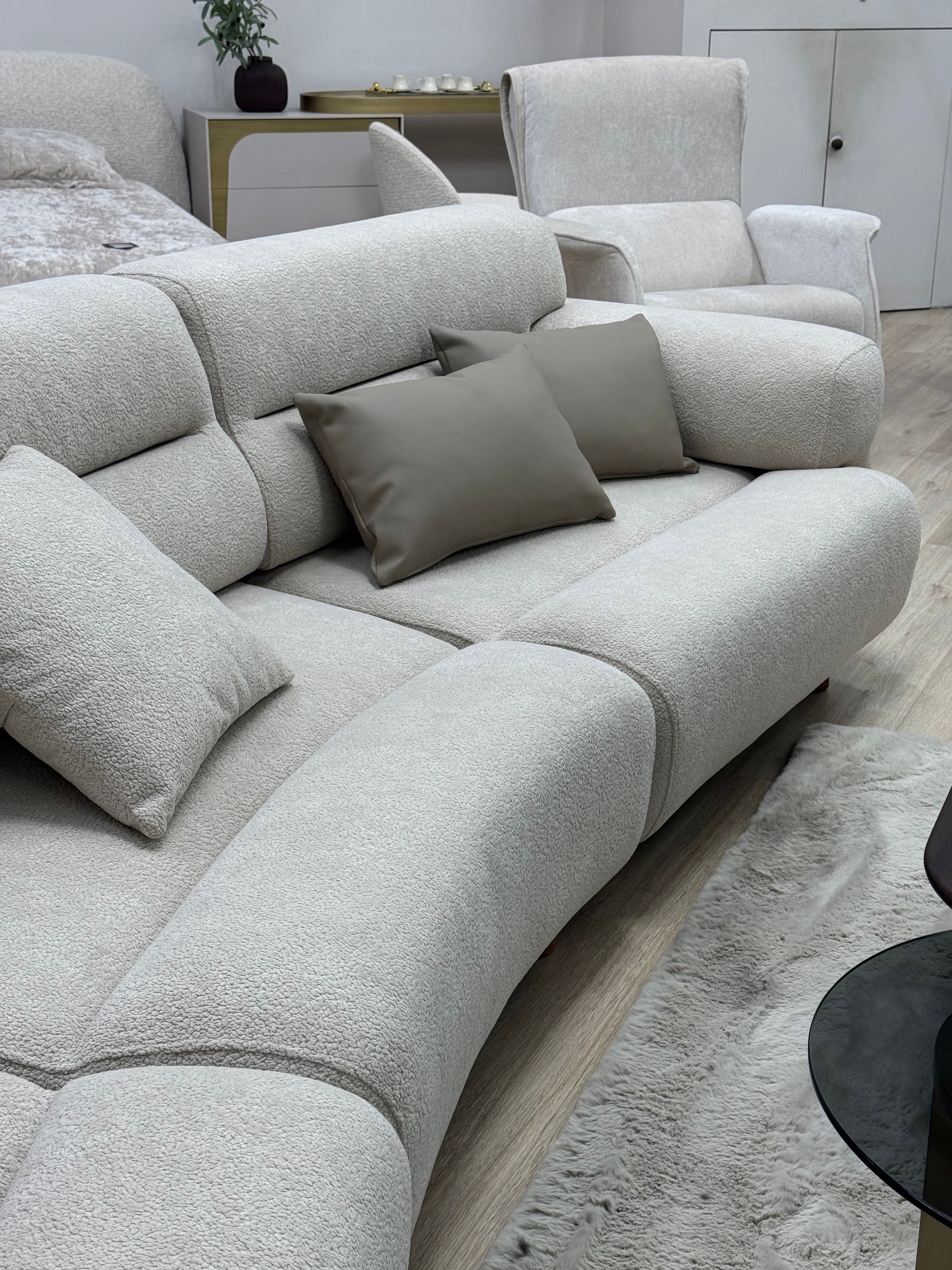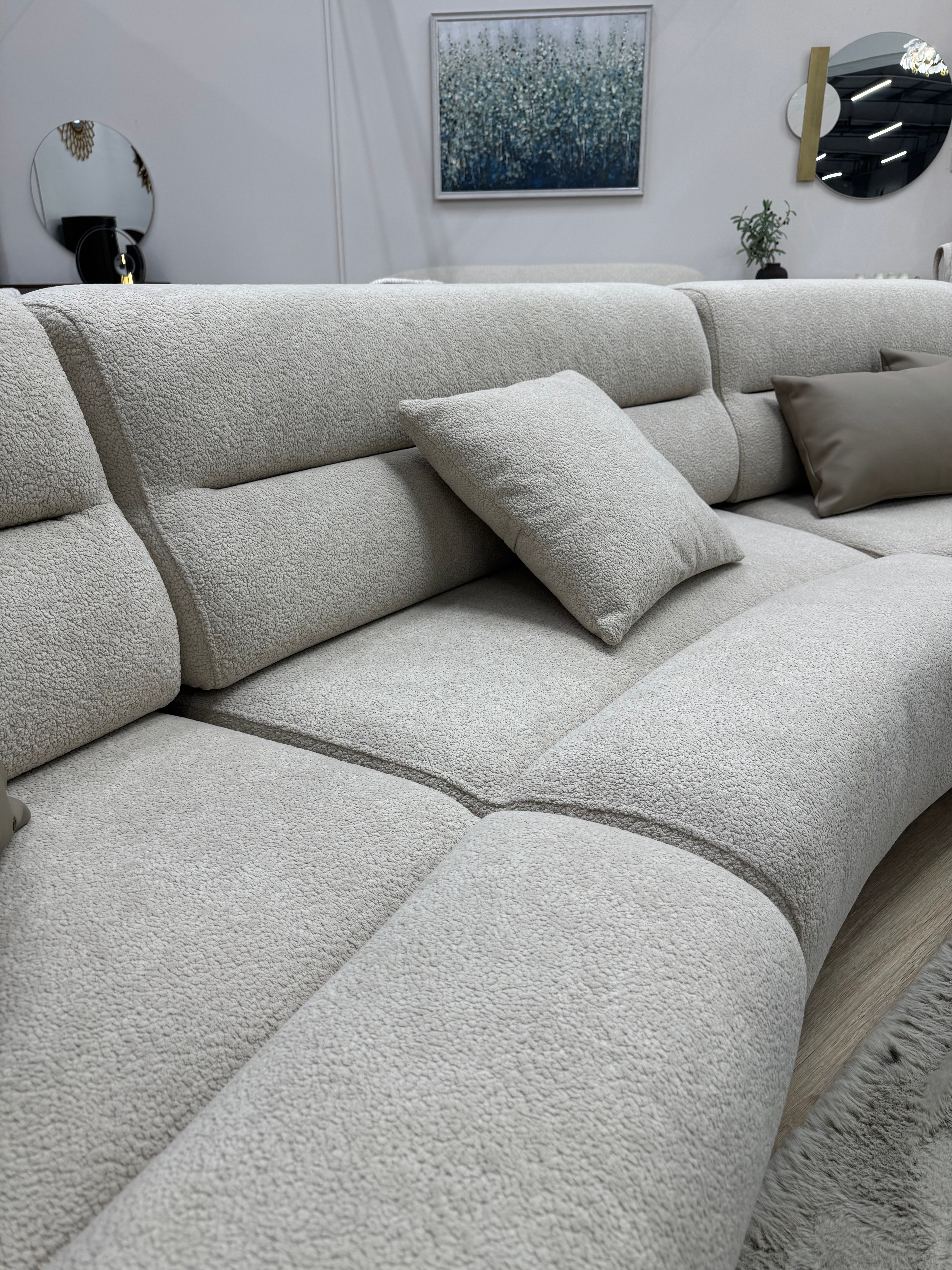 Диван кутовий PUFY — це сучасна модель з акцентом на комфорт і плавні обтічні форми. Завдяки глибокій посадці та м’яким подушкам диван створює відчуття повного розслаблення, а кутова частина ідеально підходить для відпочинку лежачи або сімейного перегляду фільмів.