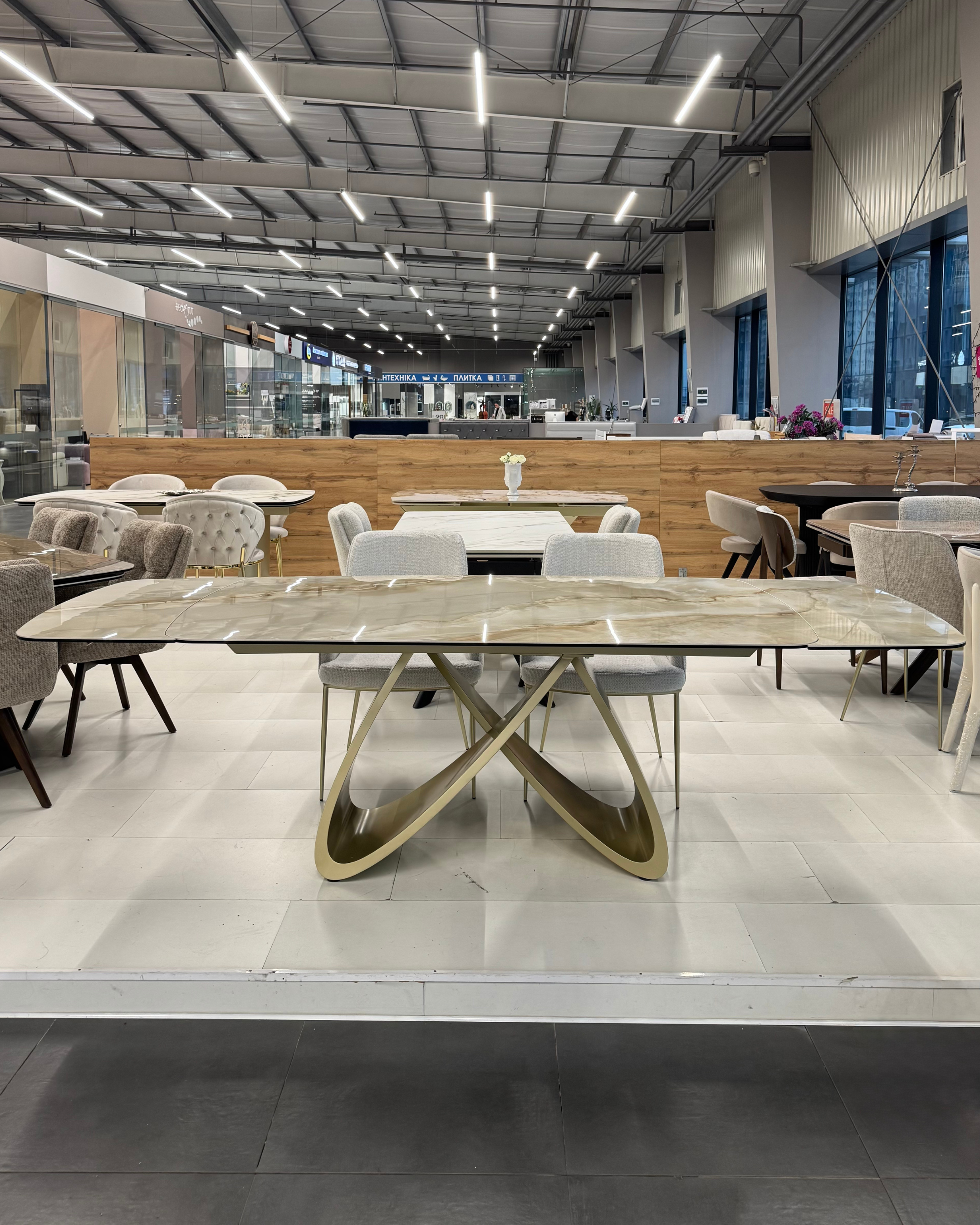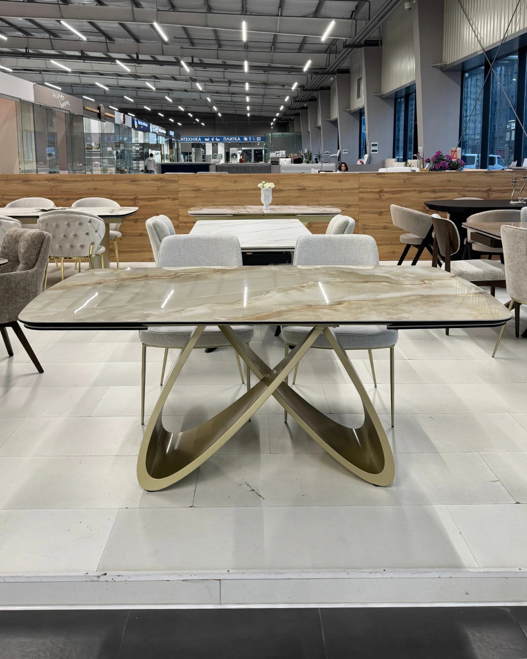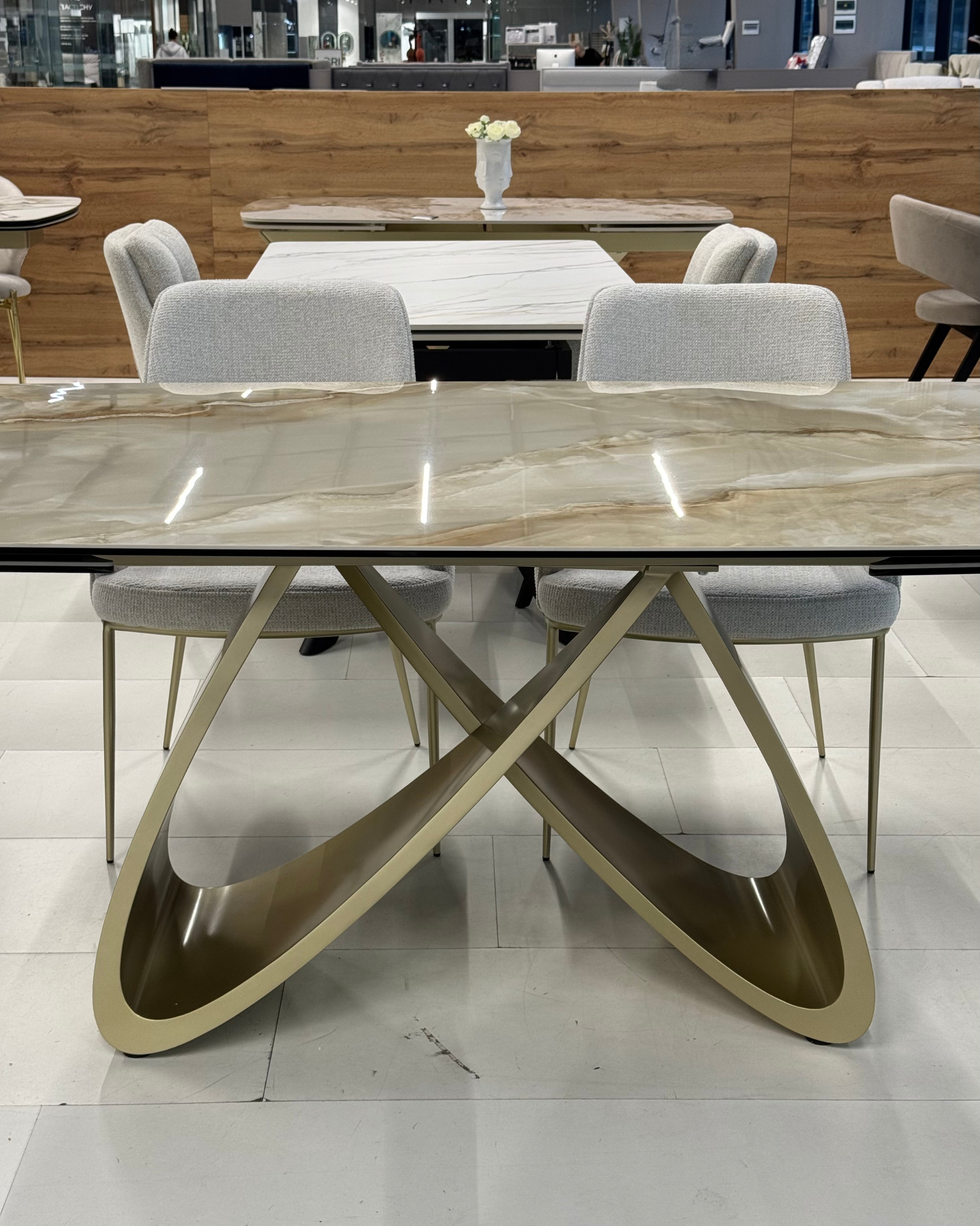 Стіл Butterfly вражає оригінальним дизайном та витонченою основою у формі крил, що створює ефект легкості та динаміки. Стільниця з візерунком натурального каменю додає розкоші, а поєднання з елегантними ніжками робить його головним акцентом будь-якої сучасної вітальні чи їдальні.