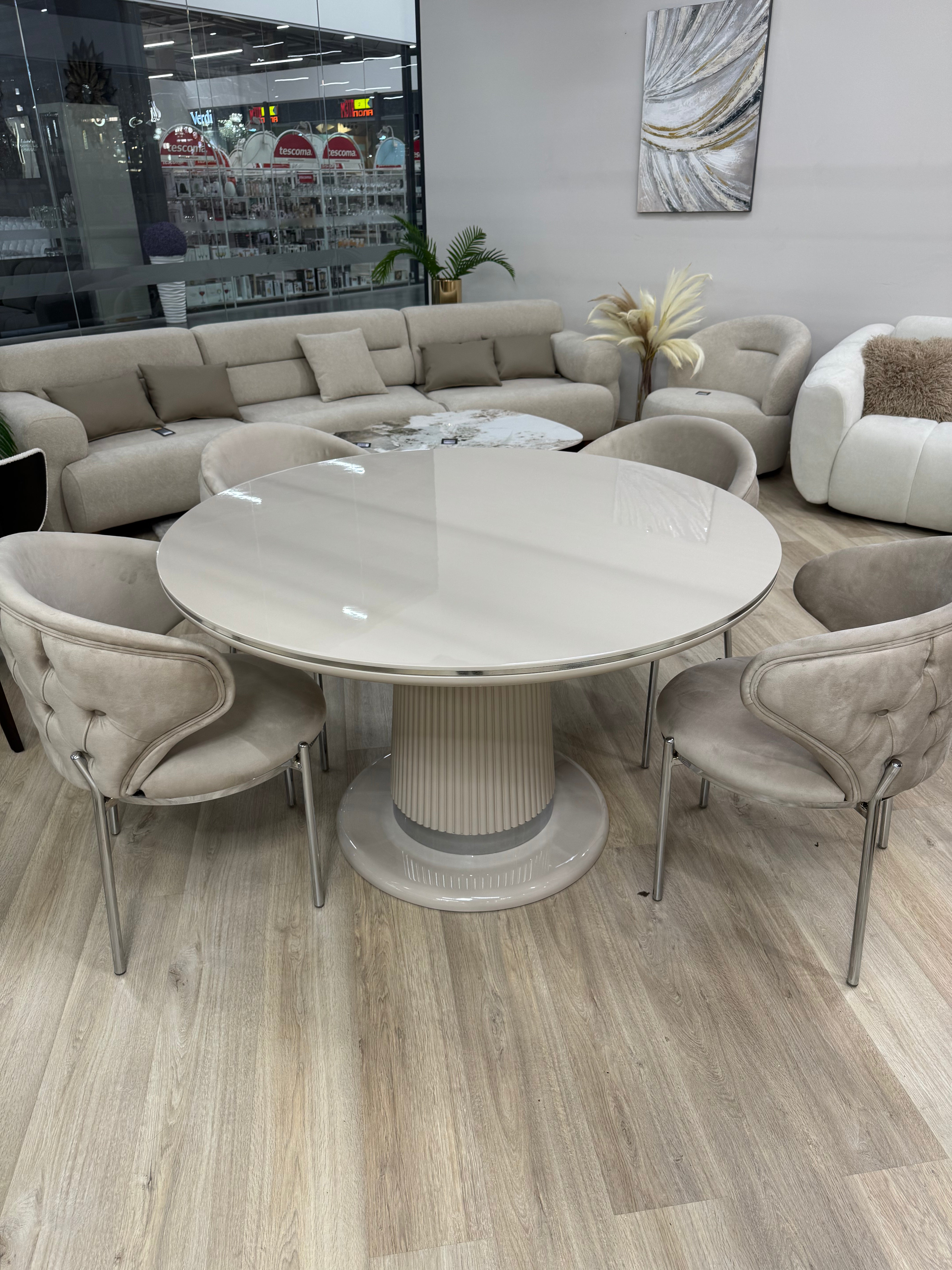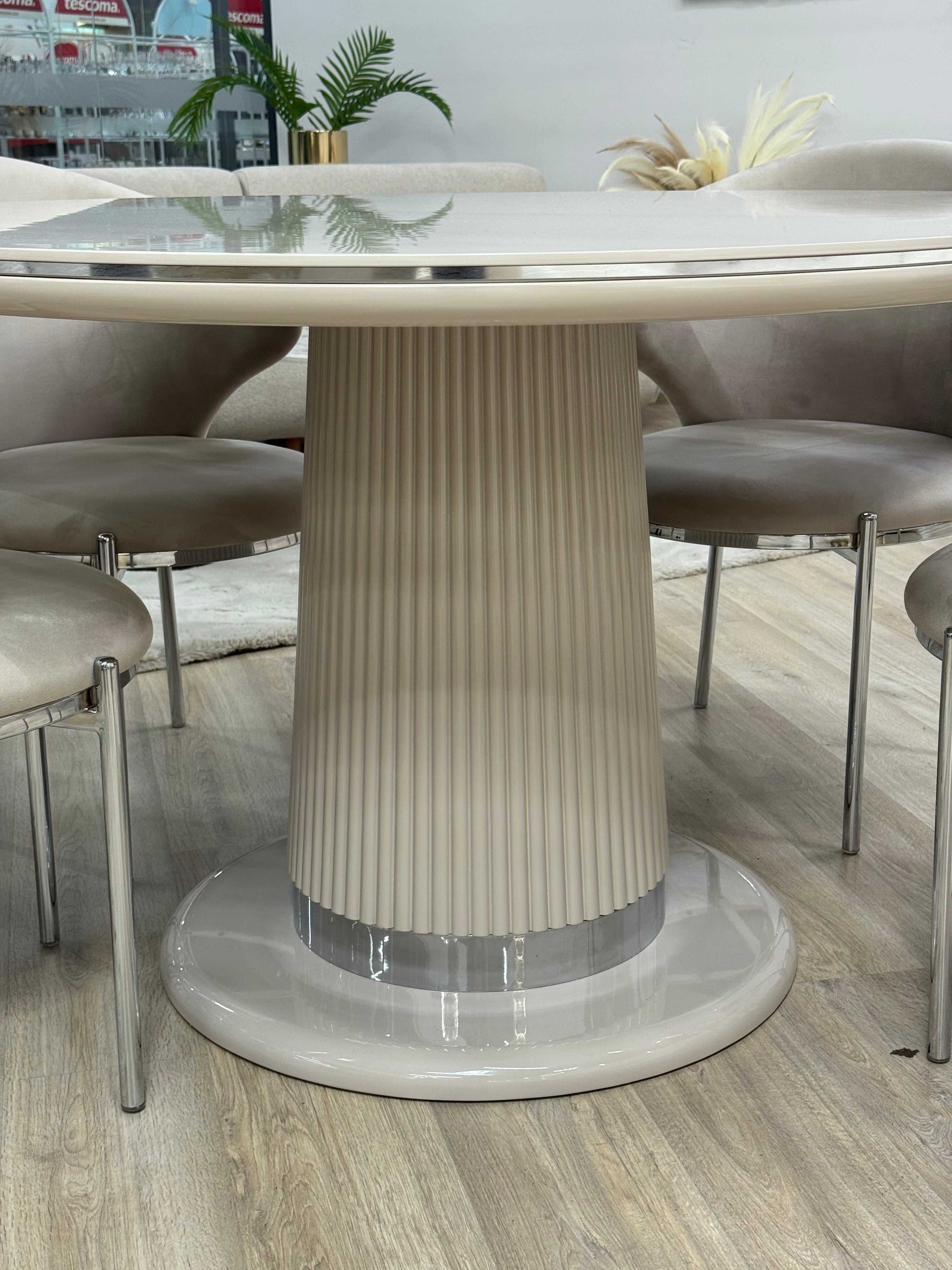 Стіл VALENTINO — це поєднання елегантного дизайну та сучасної функціональності. Міцна стільниця, стійка опора та преміальні матеріали роблять його ідеальним вибором для вашої їдальні або вітальні.